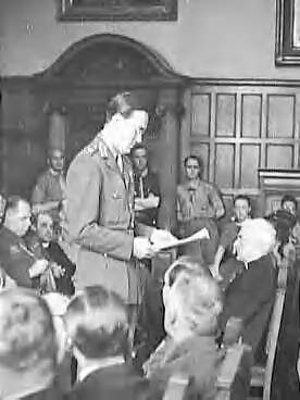 Een World Rover Scout Rally werd gehouden te Sheffield. Prins Bernhard was een van de eregasten. Hier houdt hij een toespraak