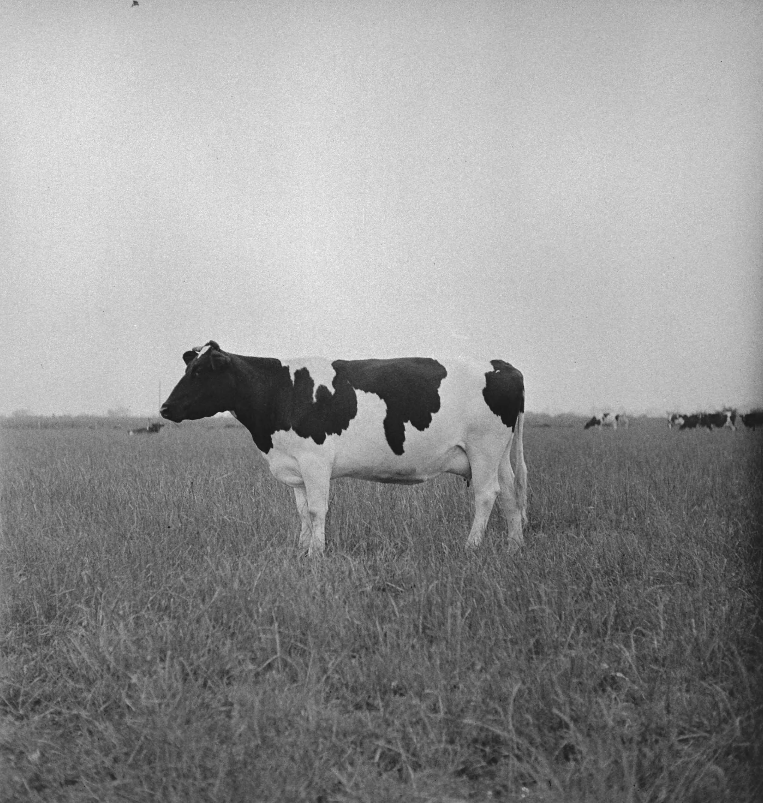 In 1938 Holland had over 1,5 million milk cows, producing on an average 1000 gallons of milk each p.a., with a fat content of 3.56. Many champion cows and bulls have been exported to establish new herds in several countries. The two oldest established herds in England are the Terling and the Lavenham herd, numbering over 1500 head at Lord Ralleigh's farms in Essex. These herds - attested and tuberculin tested - have contained many champions, winning first prizes at dairy shows al over the country. Lavenham Greay 82nd R.M. by son of Lavenham (imp. 1936) Janrol R.M. out of the most noted families of the Lavenham Herd. She is dam of Terling Graphic