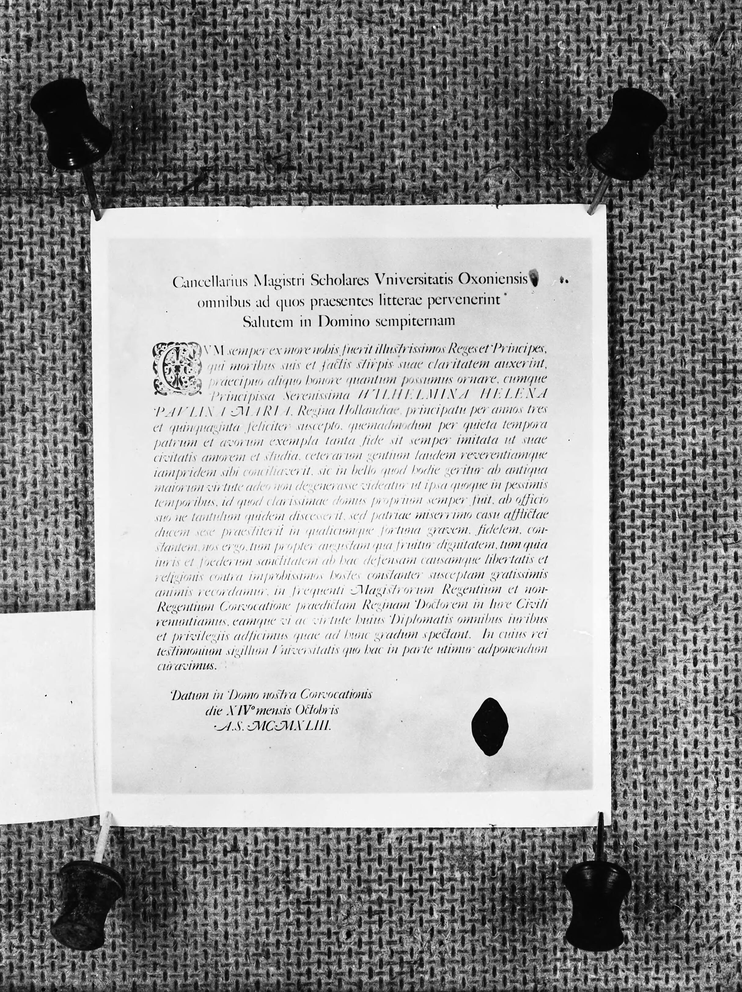 Bul van het eredoctoraat van de Universiteit van Oxford voor koningin Wilhelmina
