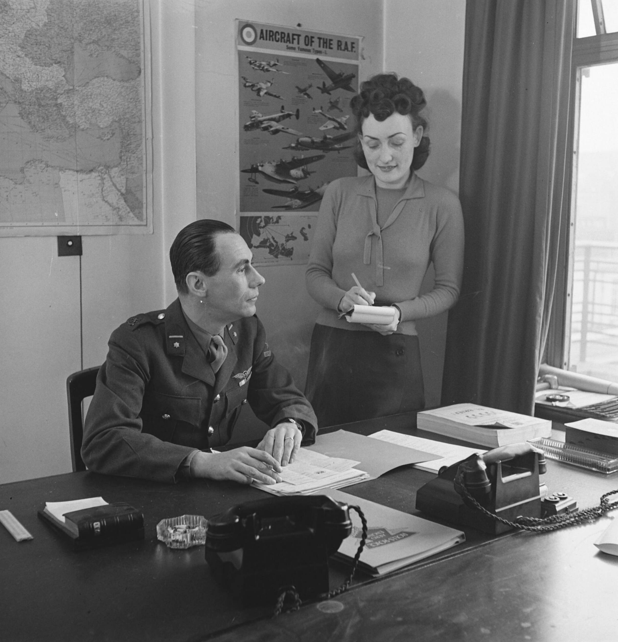 Majoor ir. Berdenis van Berlekom, chef van het van het Bureau Luchtvaart en zijn secretaresse