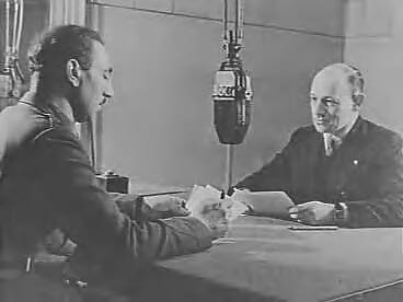 "Vrij Nederland" in Londen. De studio bij Radio Oranje. "Vrij Nederland" in Londen in de lucht
