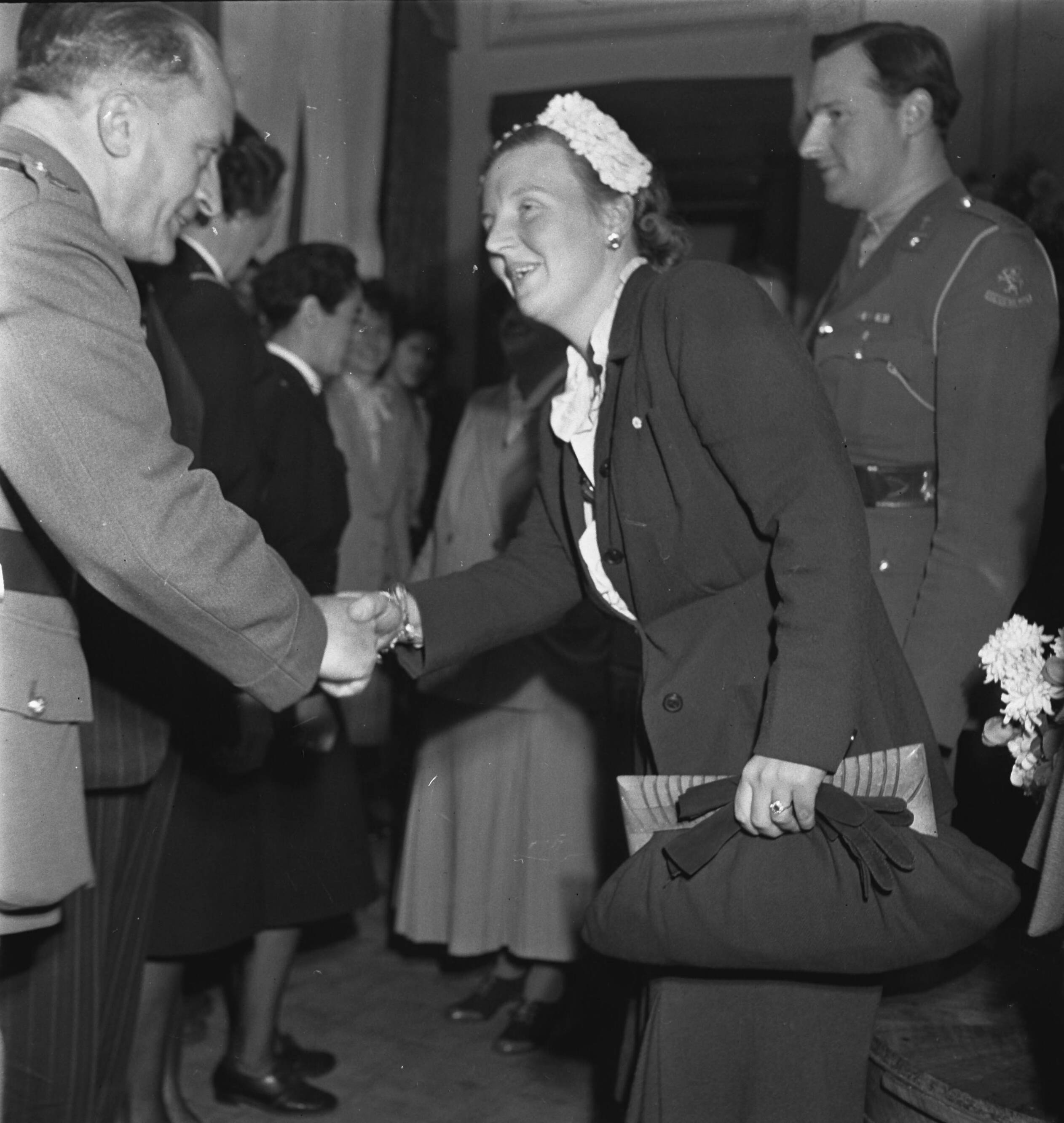 Koningin Wilhelmina en prinses Juliana brengen een bezoek aan "Oranjehaven", de Engelandvaarders club in Londen