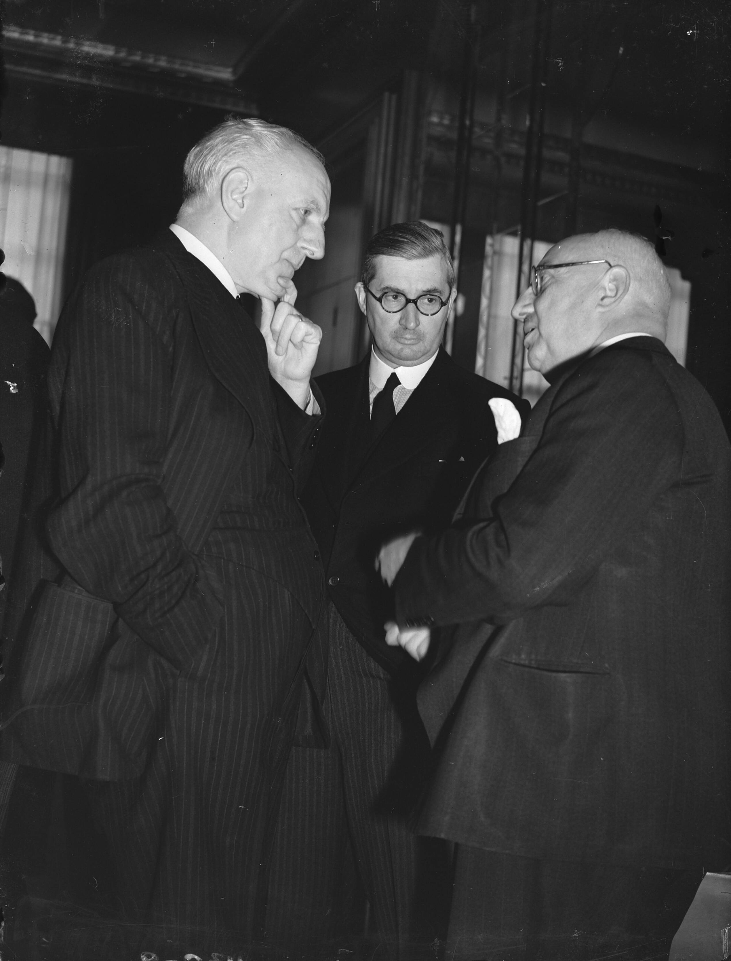 Nederlandse club "Oranjehaven" te Londen. Rechts minister van Oorlog Lidth de Jeude