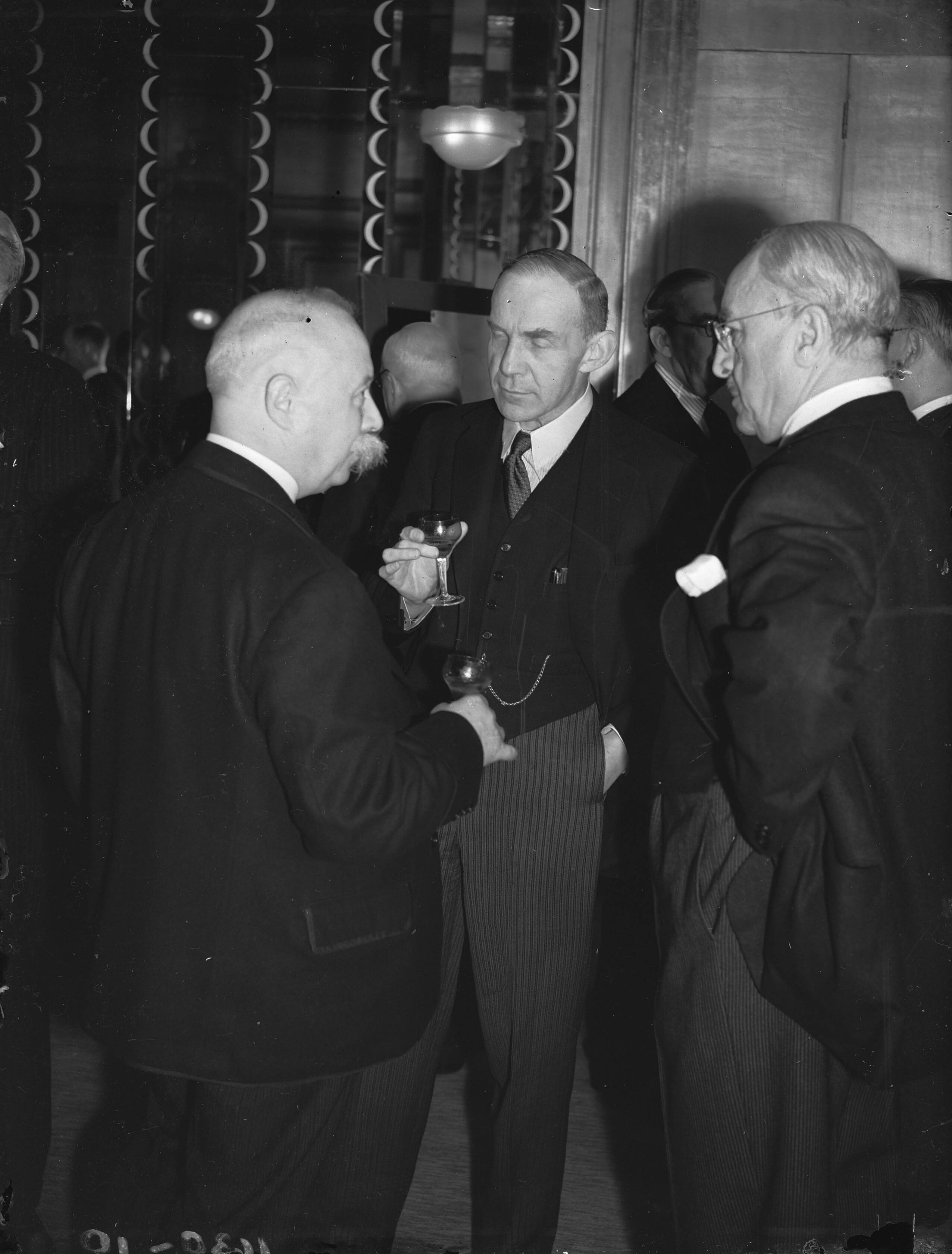 Nederlandse club "Oranjehaven" in Londen. Links minister-president P.S. Gerbrandy