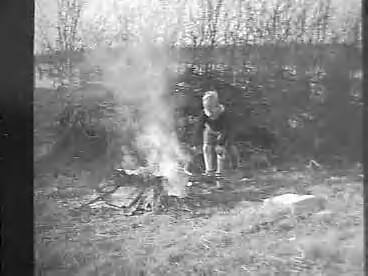 Nederlandse kinderen("bleekneusjes")in Conventry tijdens bezoek van koningin Wilhelmina. Bezig met een vuur te maken