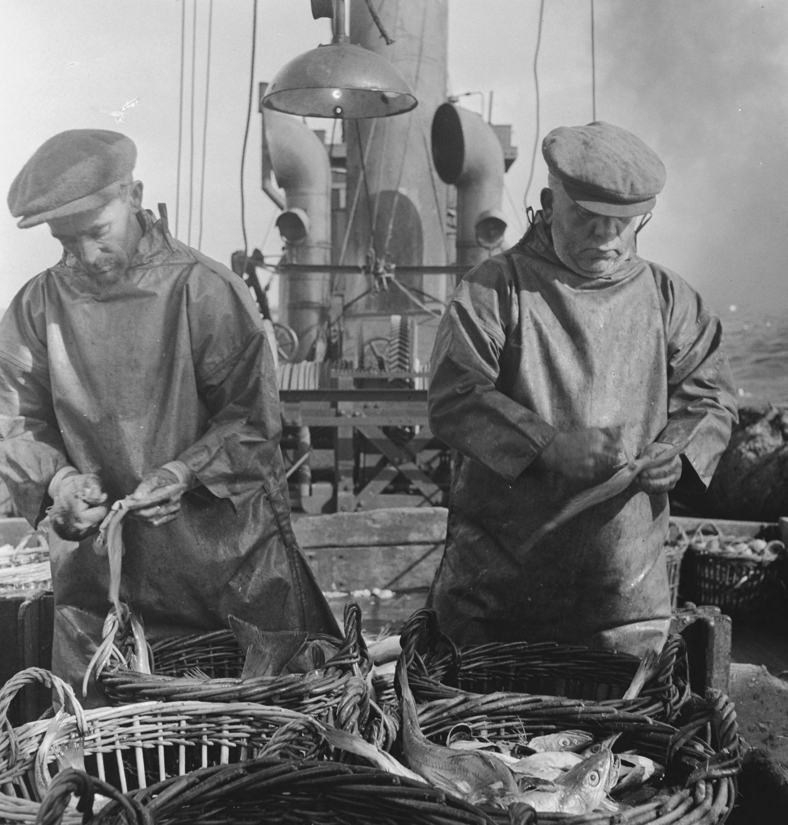 Bijschrift "On board a Dutch trawler" Aan boord van een Nederlandse vistrawler