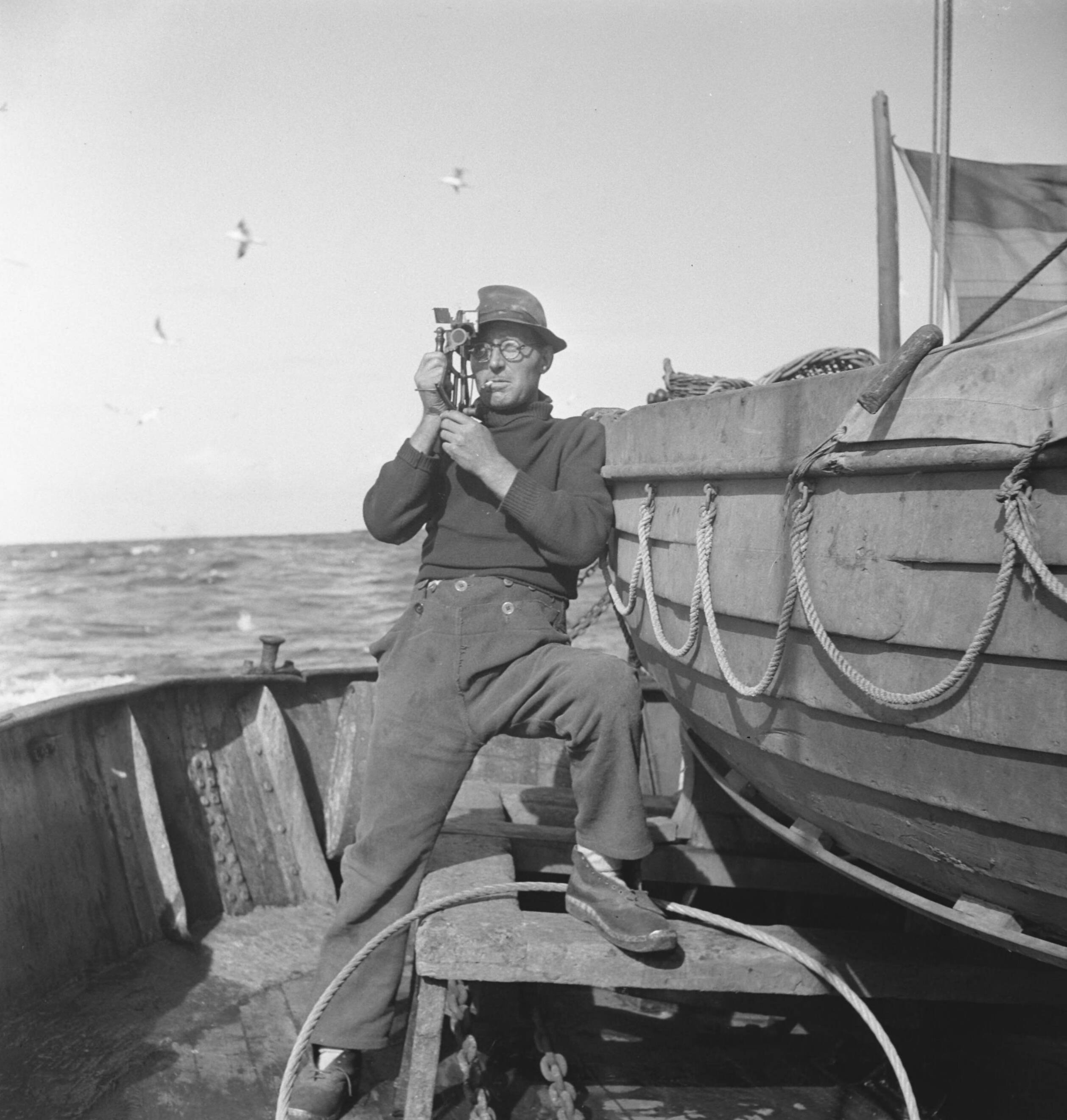 Bijschrift: "On board a Dutch trawler" Aan boord van een Nederlandse vistrawler