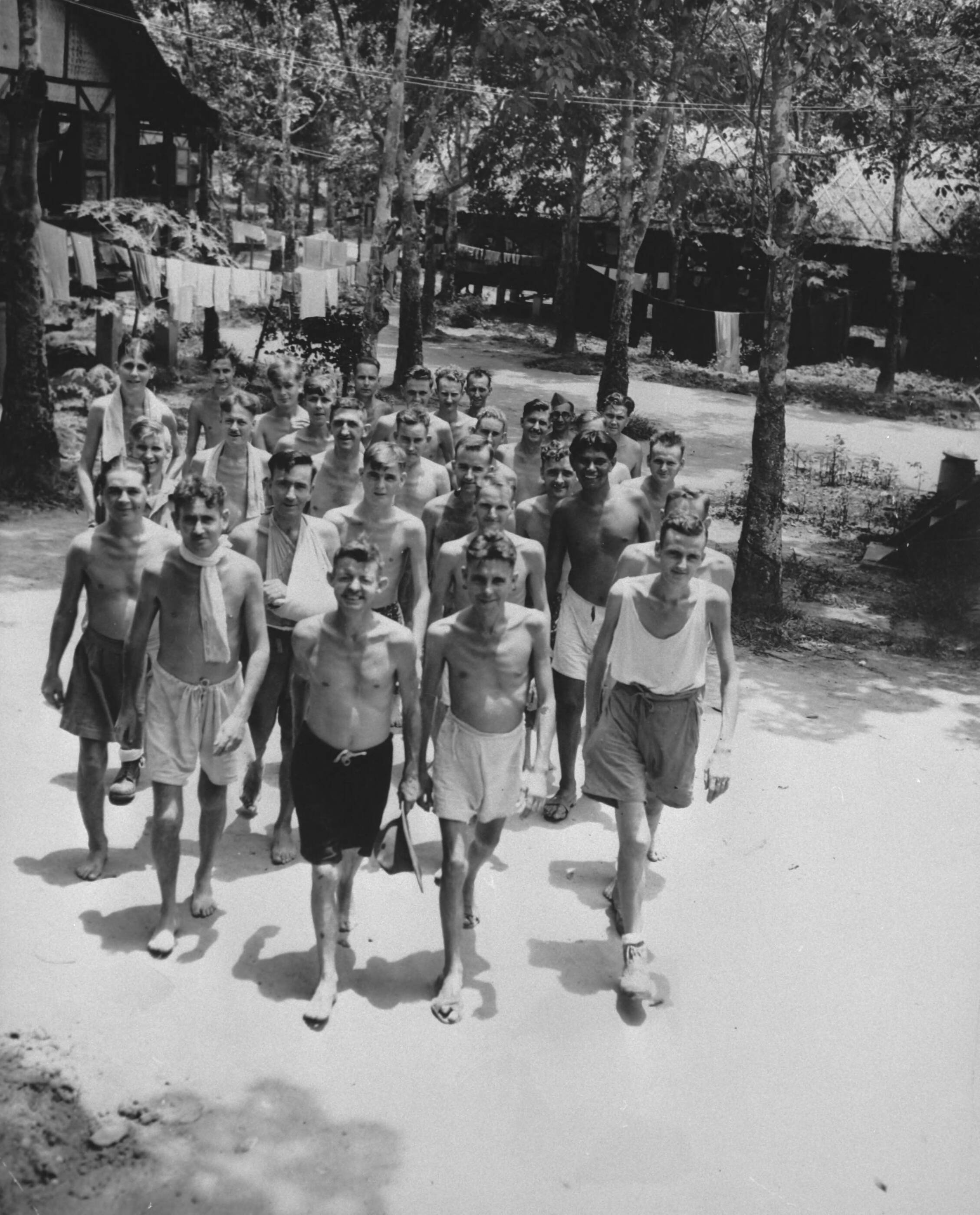 Een groep van A.I.F. ex-krijgsgevangen die gevangen zaten in het "Cranji" bedoelt wordt Changi. red. gevangenkamp. In de laatste maand zijn de mannen aanzienlijk aangekomen. Op dit moment ontvangen zij medische verzorging, terwijl zij wachten op transport naar Australië. De meerderheid van deze groep komt uit Victoria