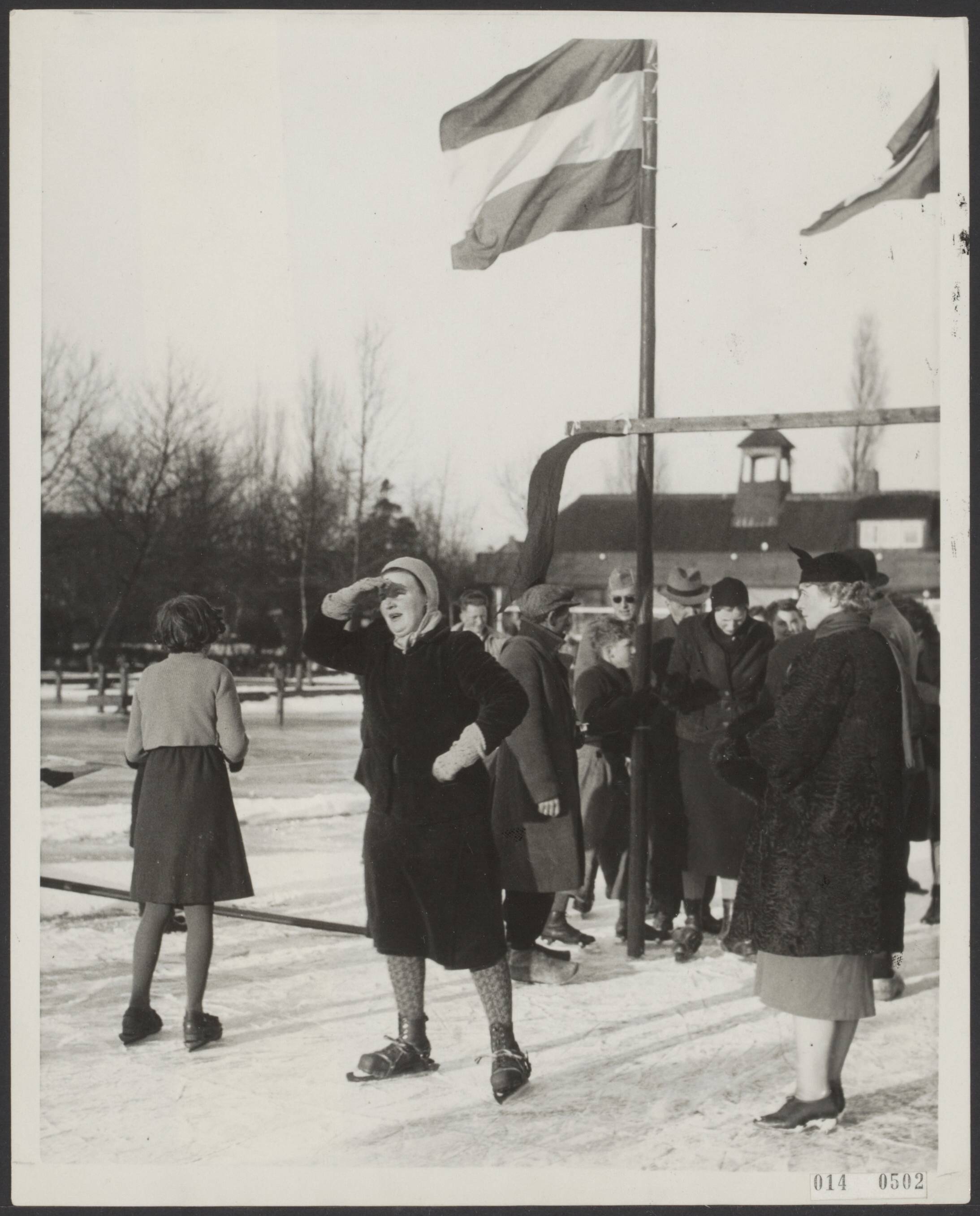 Prinses Juliana op de Loosdrechtse Plassen. Samen met prins Bernhard en een klein gezelschap heeft zij daar schaats gereden