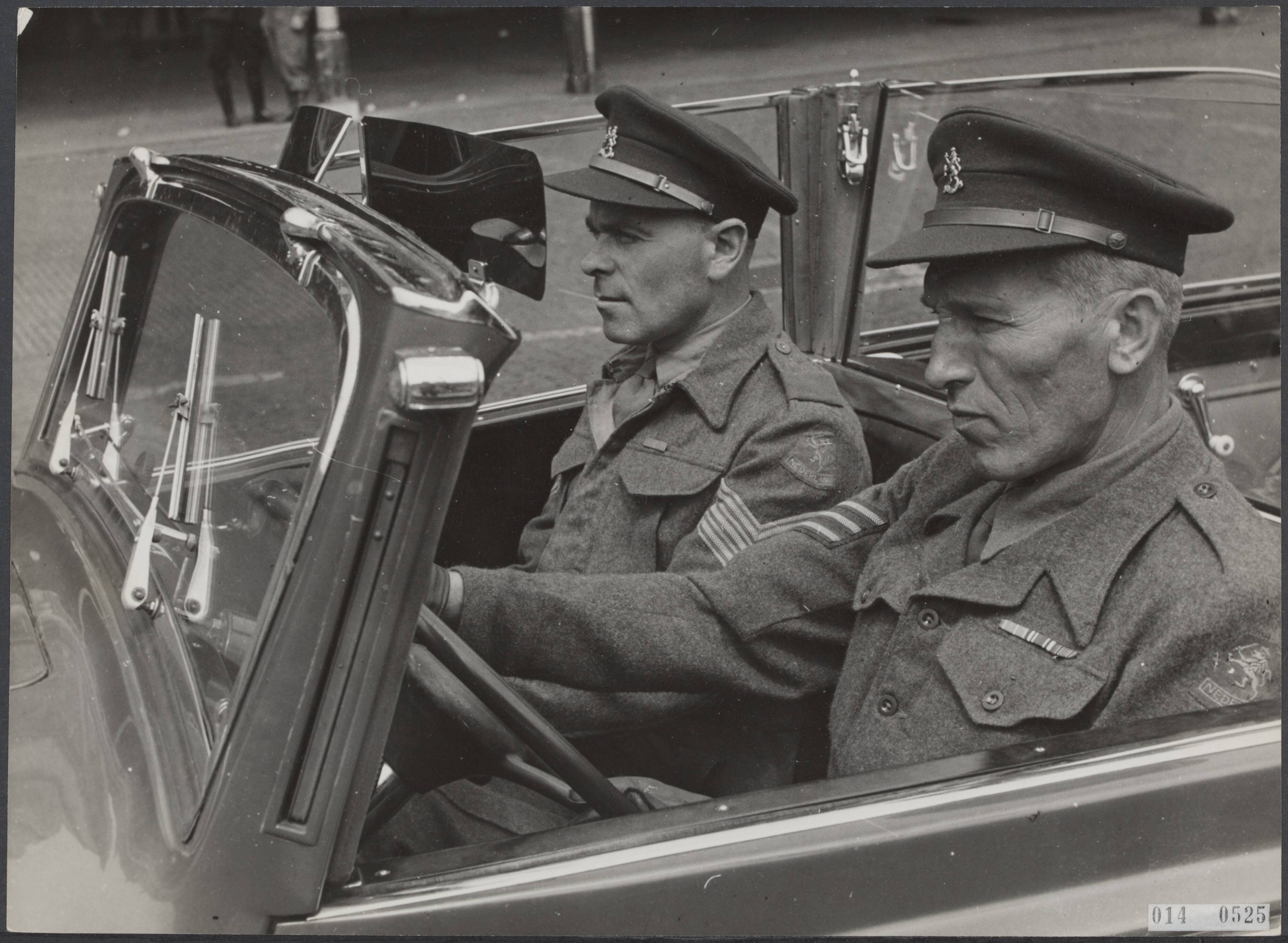 Koningin Wilhelmina weer in paleis Noordeinde. Sinds 18 jaar is de heer De Graaf (rechts) de persoonlijke chauffeur van de koningin