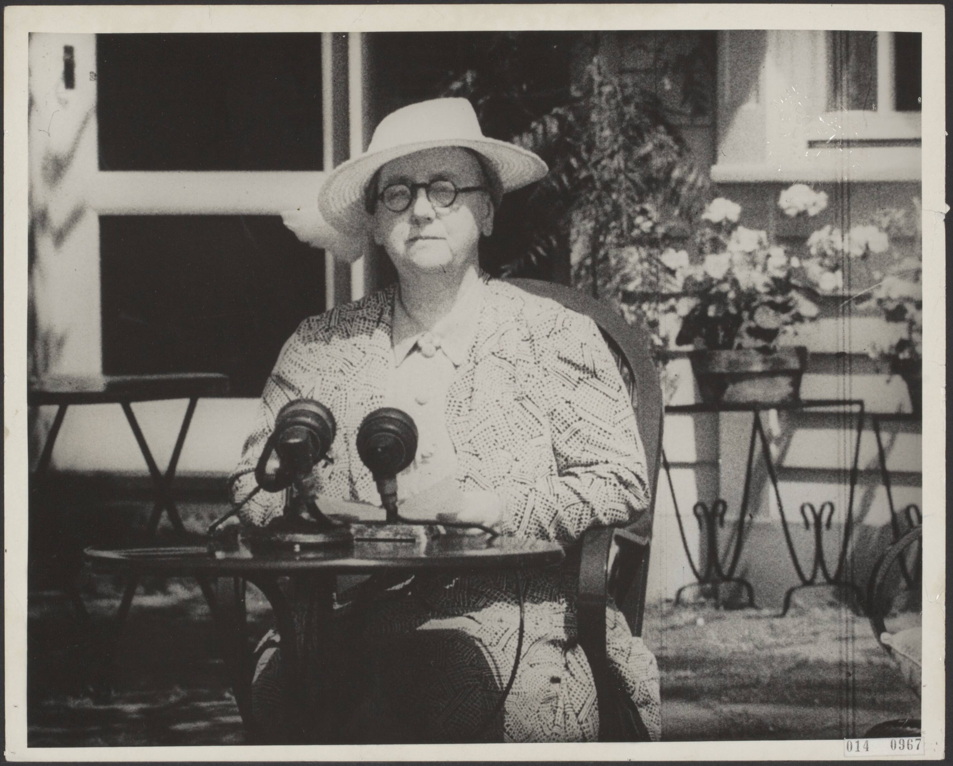 Geen bijschrift Koningin Wilhelmina radiotoespraak in Engeland in de Tweede Wereldoorlog vanuit haar buitenhuis)