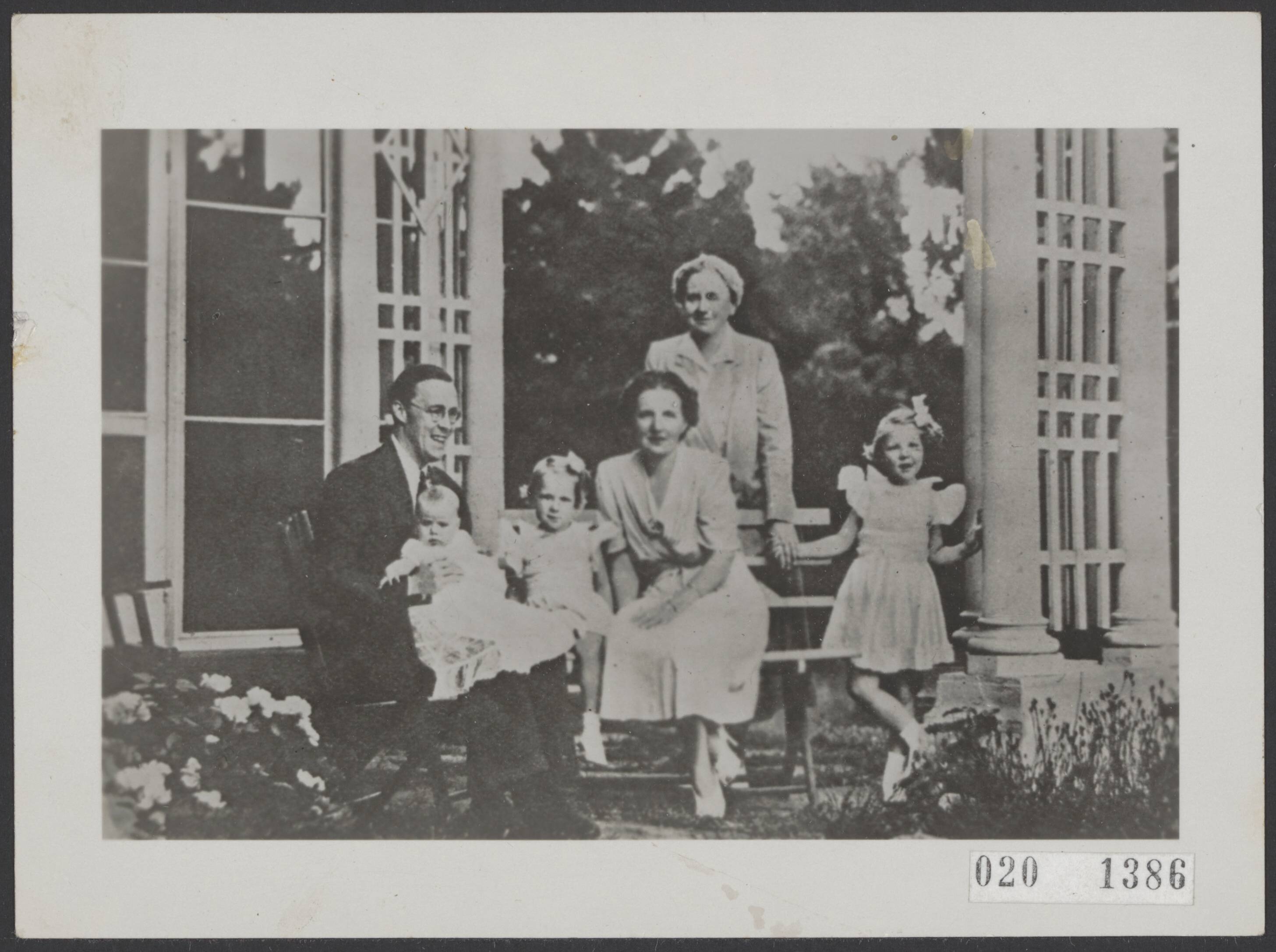 De koninklijke familie in Canada. Vlnr. Prins Berhard, prinses Margriet, prinses Irene, prinses Juliana, koningin Wilhelmina, prinses Beatrix