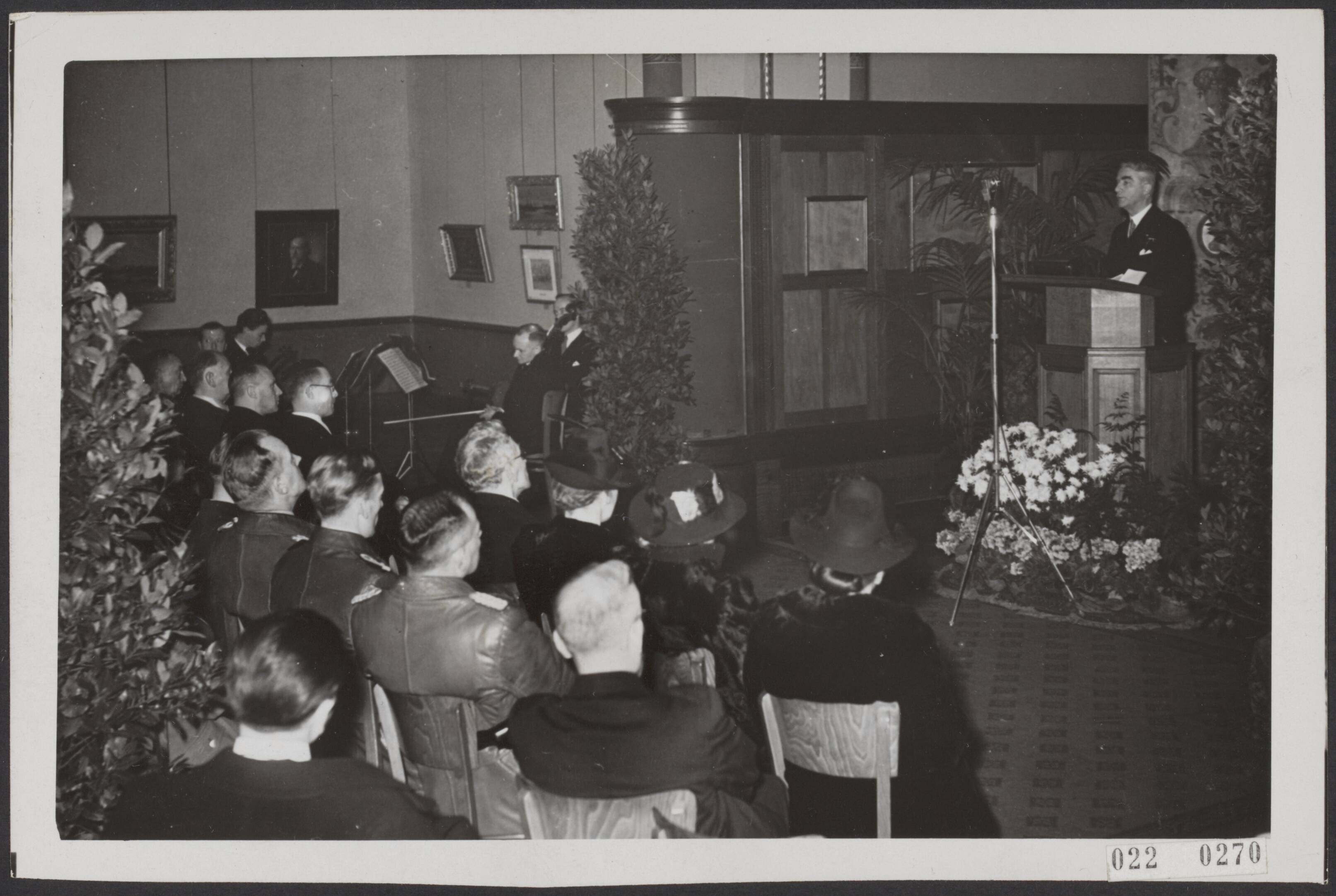 Hedenmorgen werd in het Rijksmuseum de tentoonstelling "Bernstein, Gold des Meeres" officiëel geopend. Burgemeester E.J. Vôute neemt namens de gemeente Amsterdam de tentoonstelling over