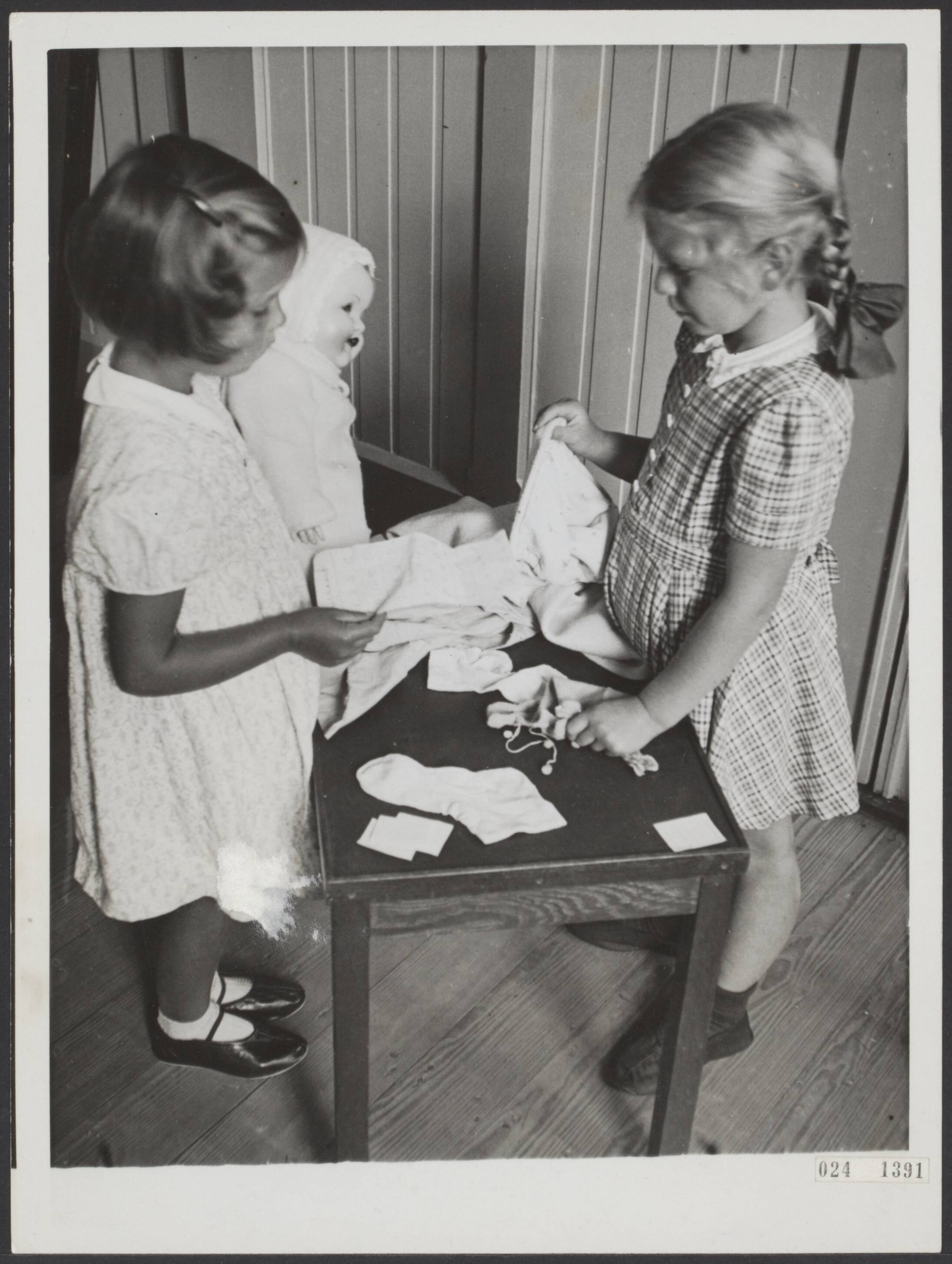 "Zoo de ouden zongen, piepen de jongen....of ... de jeugd past zich bij hun spel aan. Tafereeltje in een fröbelschool. Poppenkleertjes op de puntenkaart.