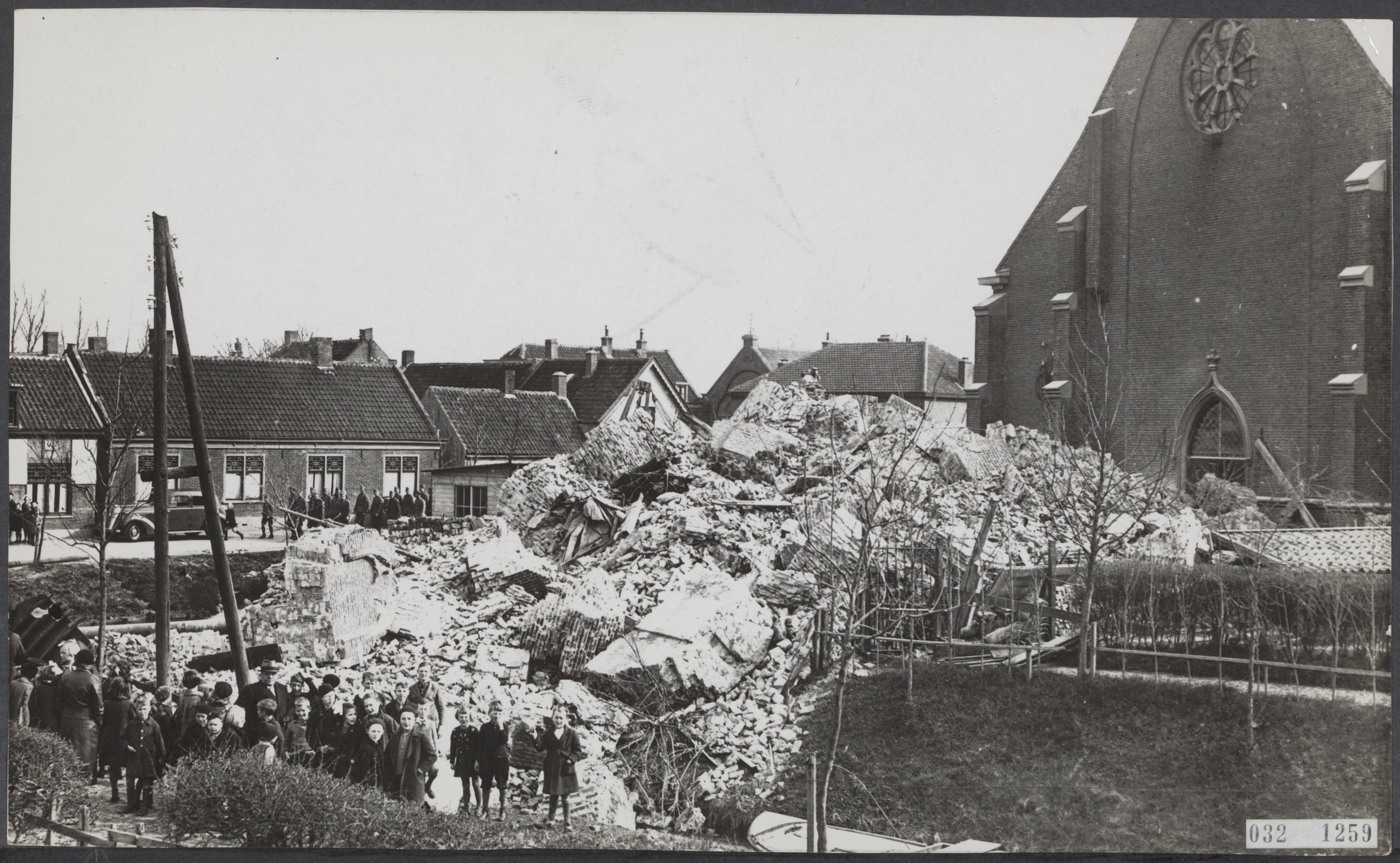 Kerktoren van de Dorpskerk te Pijnacker ingestort