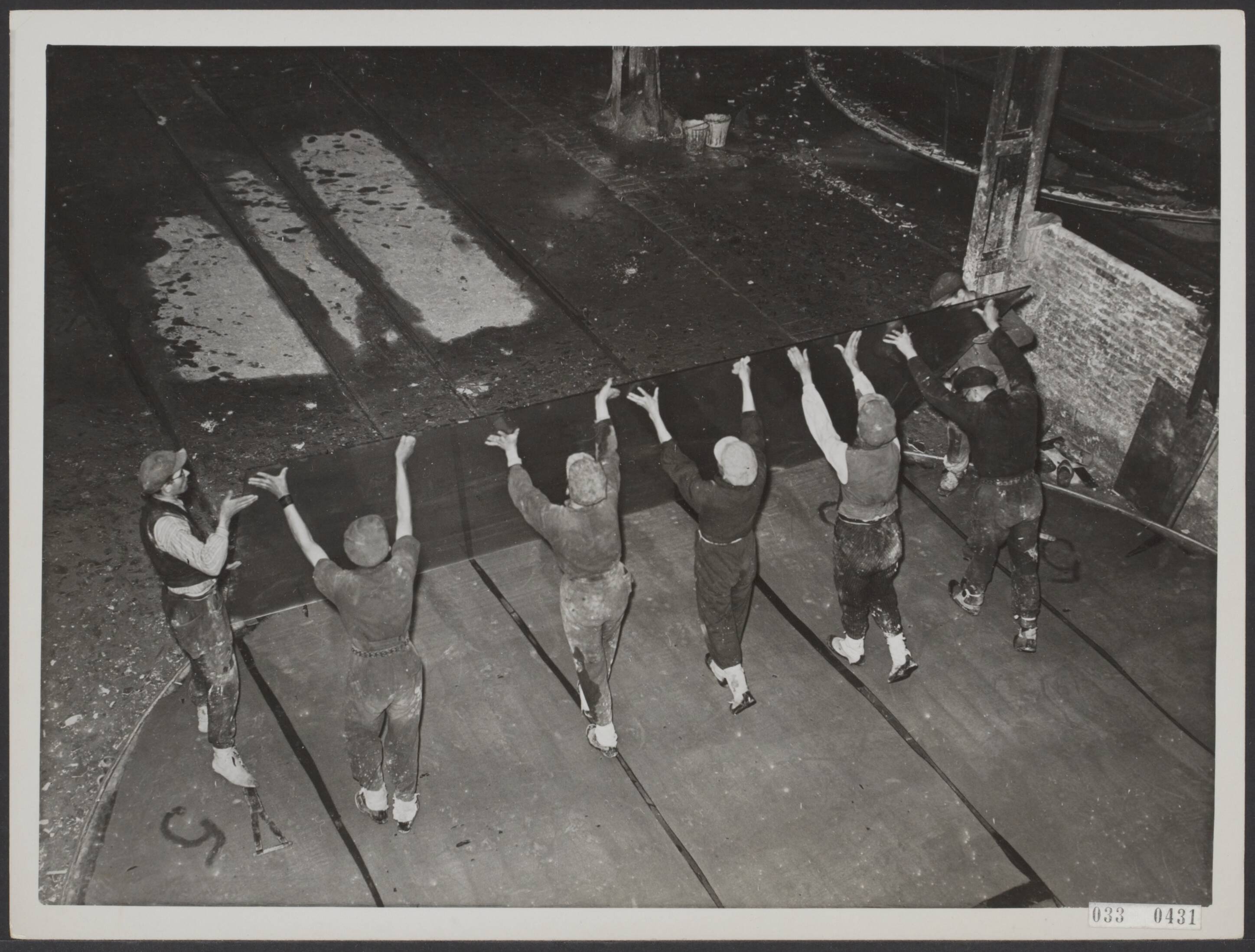 Drukte in de glasindustrie. Nu de vraag naar spiegel- en vensterruiten zeer groot is, wordt in de glasfabriek te Heerlen op zeer grote capaciteit gewerkt, mede omdat het bewerkte glas in mindere mate wordt geimporteerd. De grote platen ruw glas worden op grote schijven gelegd teneinde deze een slijp- en polijstproces te doen ondergaan