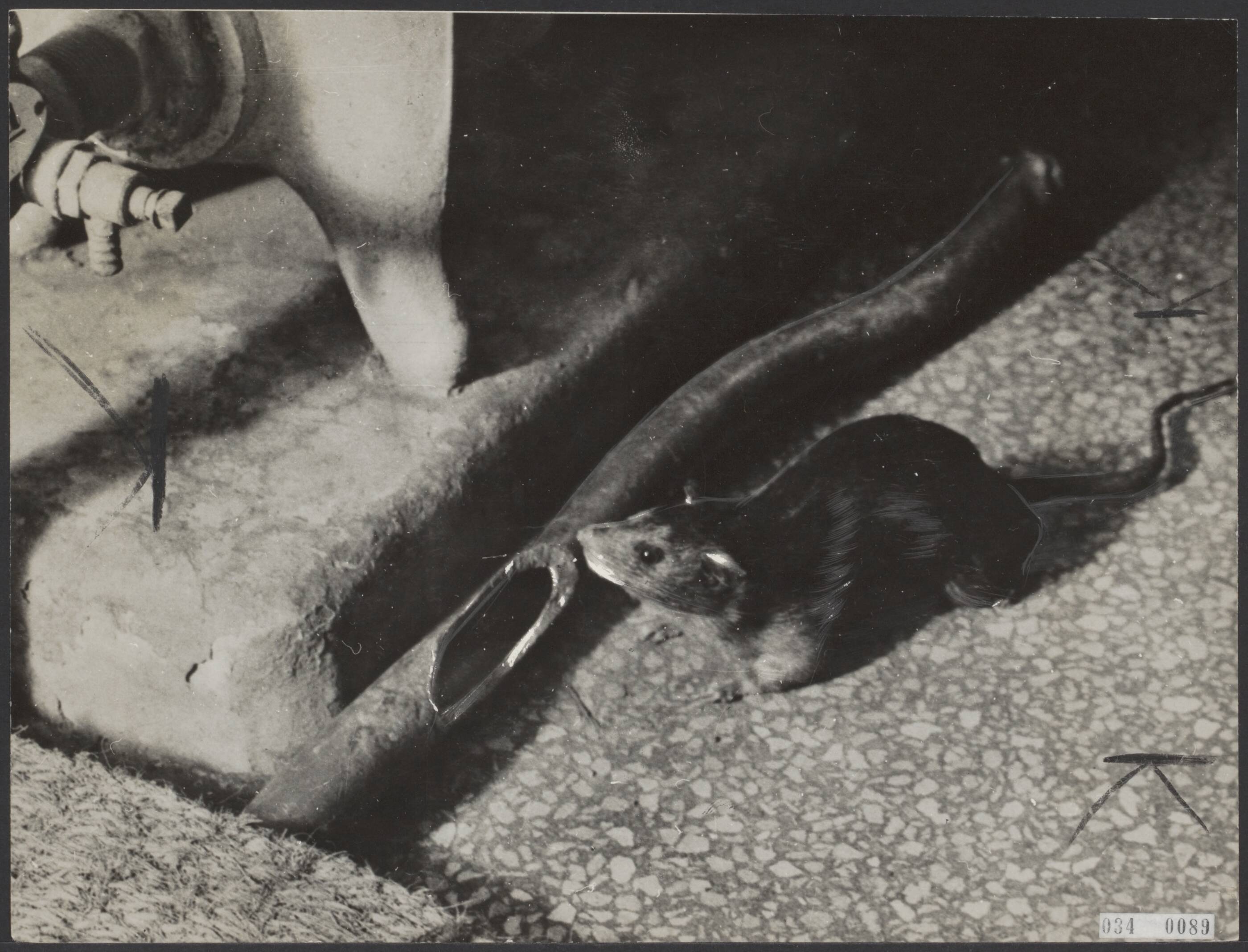 Strijd tegen het rattengevaar. Een rat heeft een kabel aangevreten