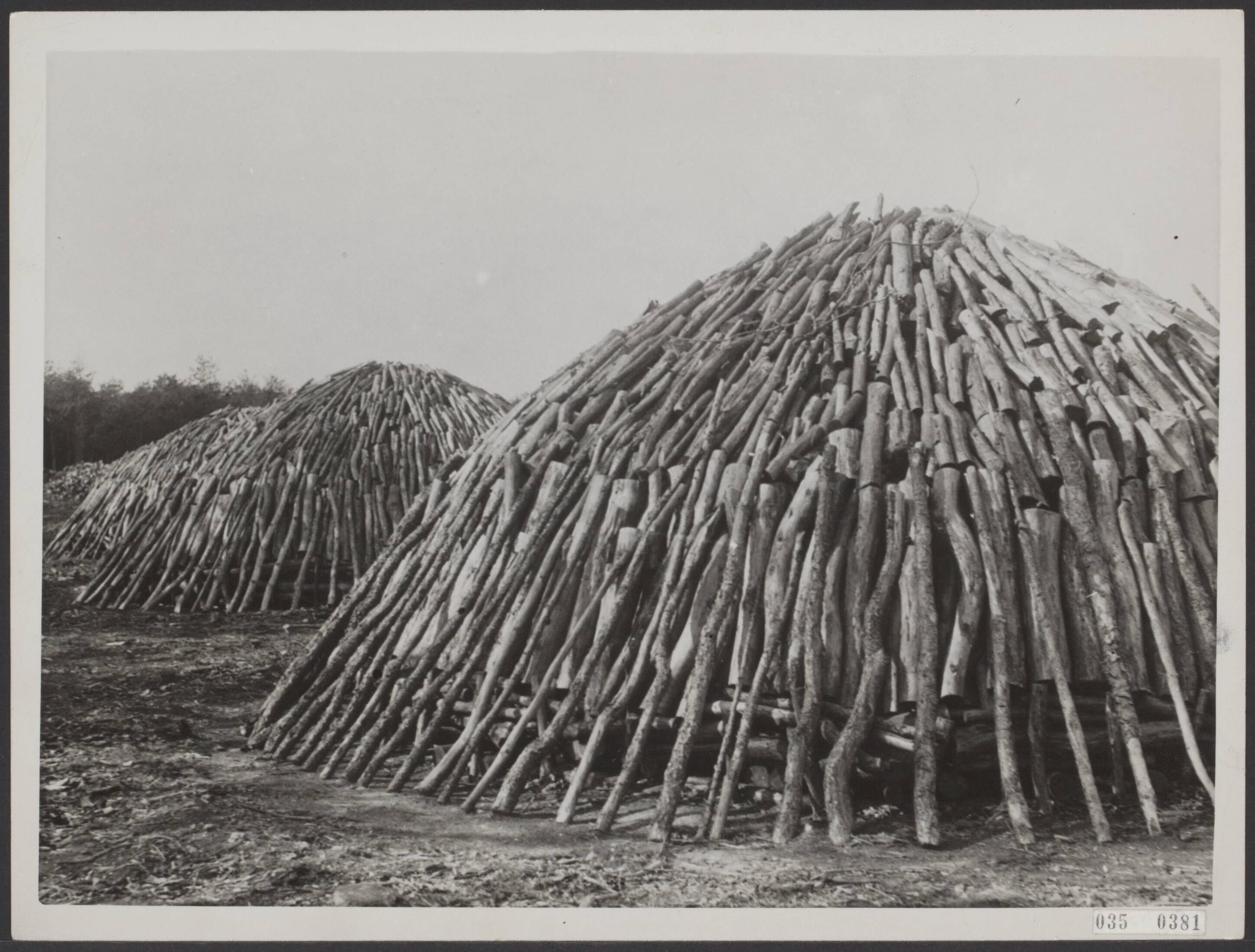 In de bossen onder Amersfoort worden grote hoeveelheden dennenhout tot z.g . "mijlen" opgestapeld, dien men in brand steekt.