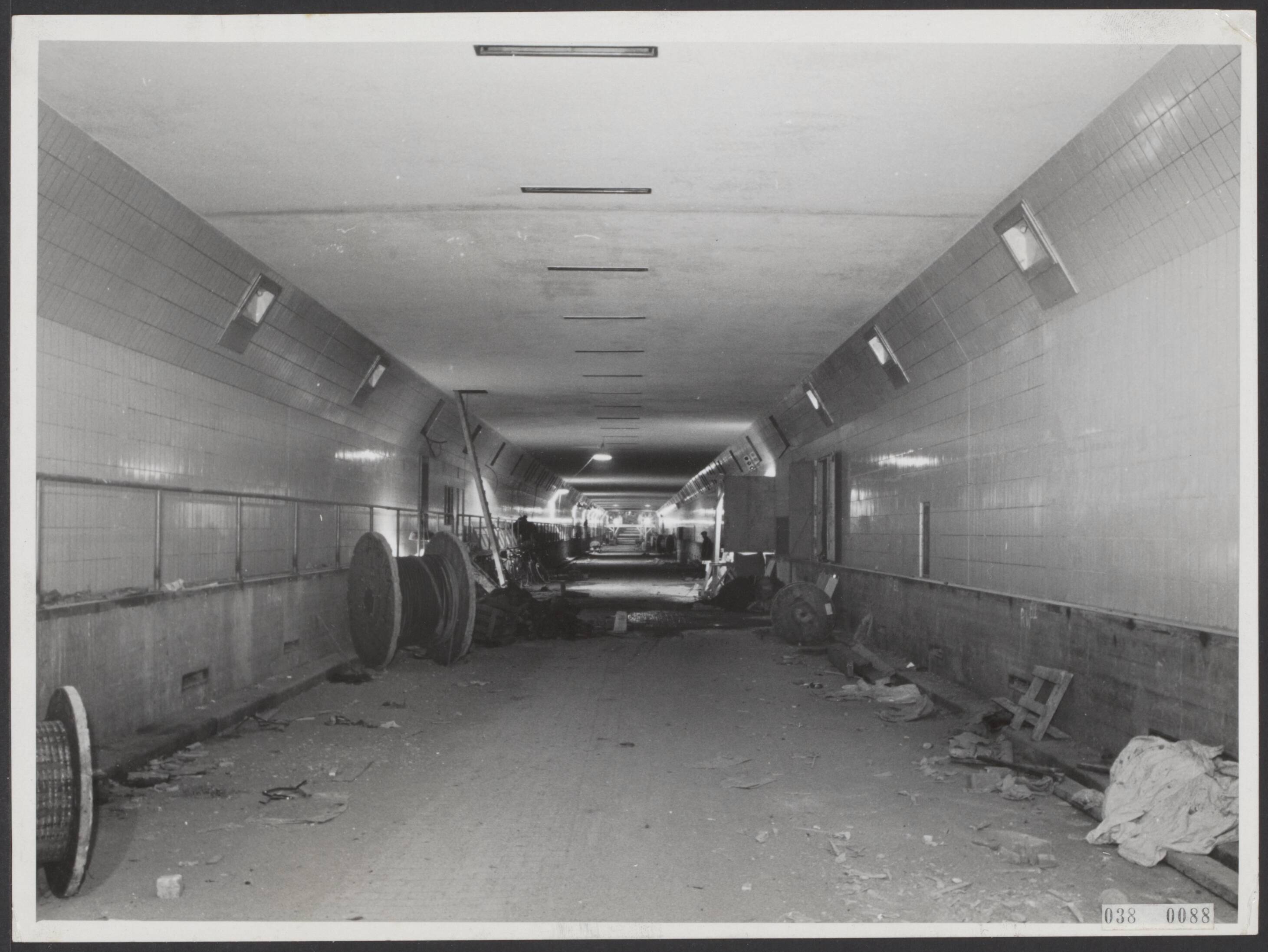 Een van de autosnelwegen in de tunnel
