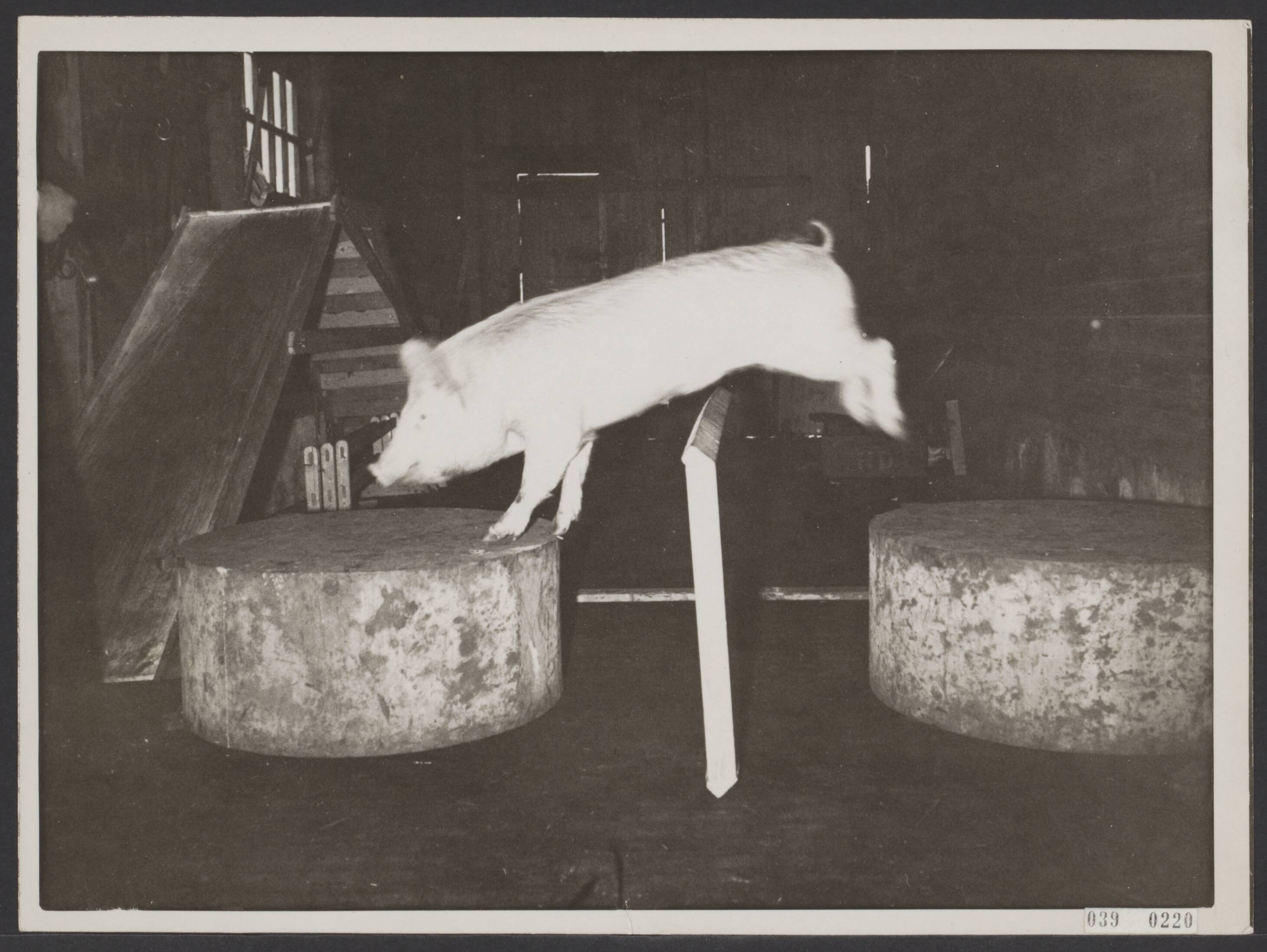 Achter de schermen van het circus. 's Winters werken de artiesten druk aan de vervolmaking van hun nummers. Zo ook de bekende circus-conferencier Bernhard Gosschalk, die in een boerenschuur zijn beide varkens voorbereidt op het komende seizoen. Het springnummer