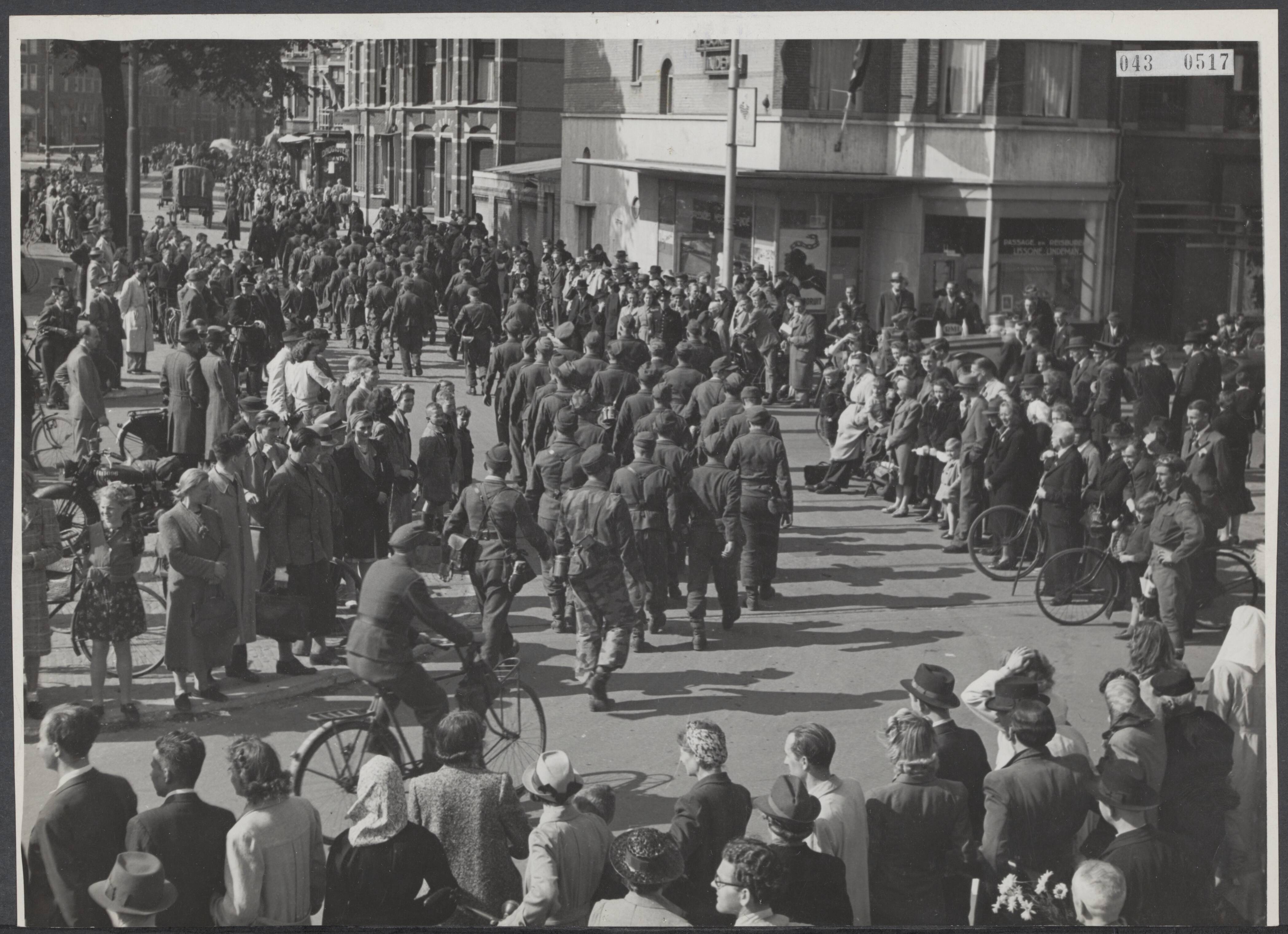 Duitse krijgsgevangen verlaten Den Haag. Locatie Valkenbosplein
