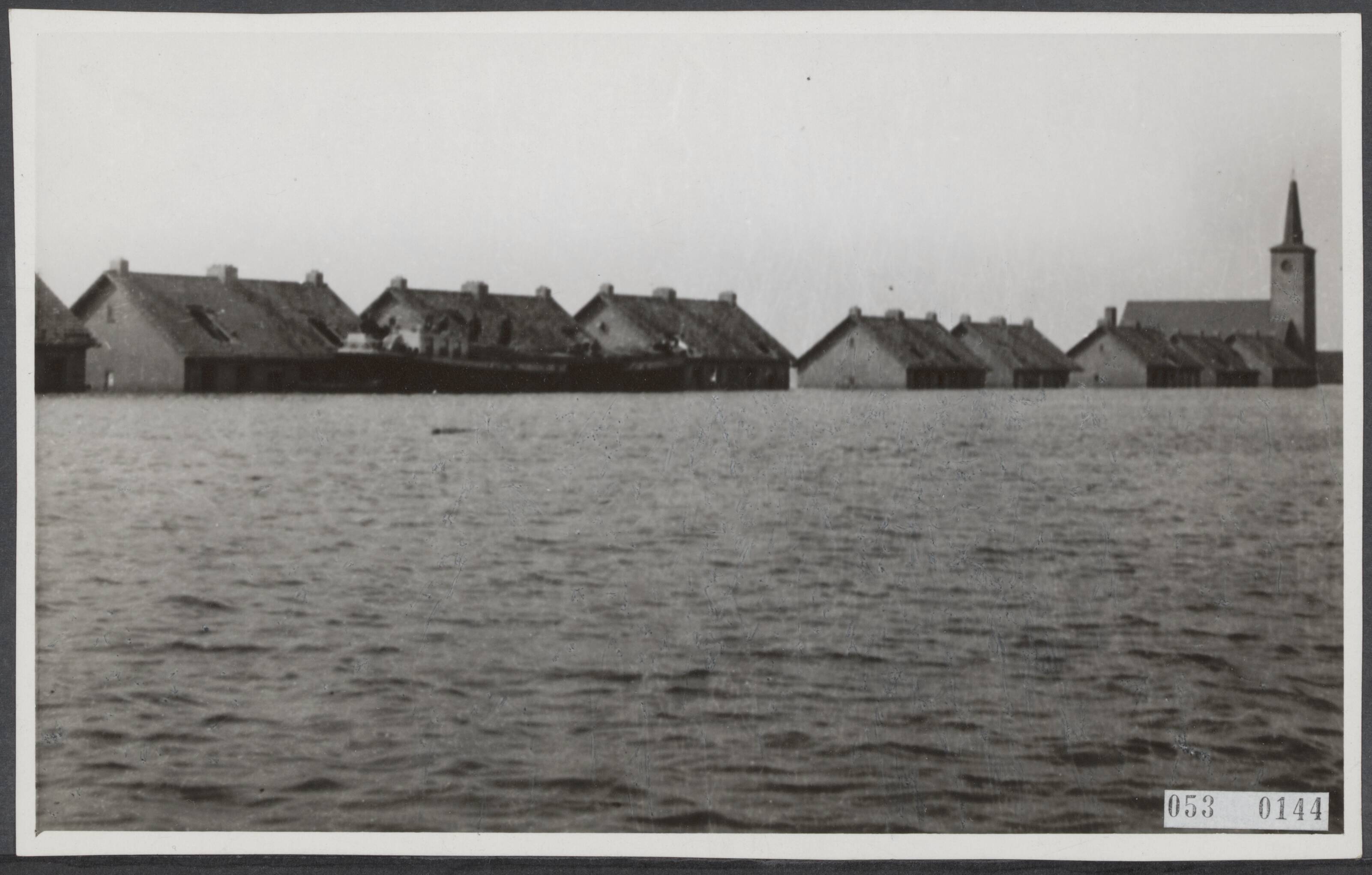 Wieringermeer na inundatie. De Brugstraat onder water in Middenmeer