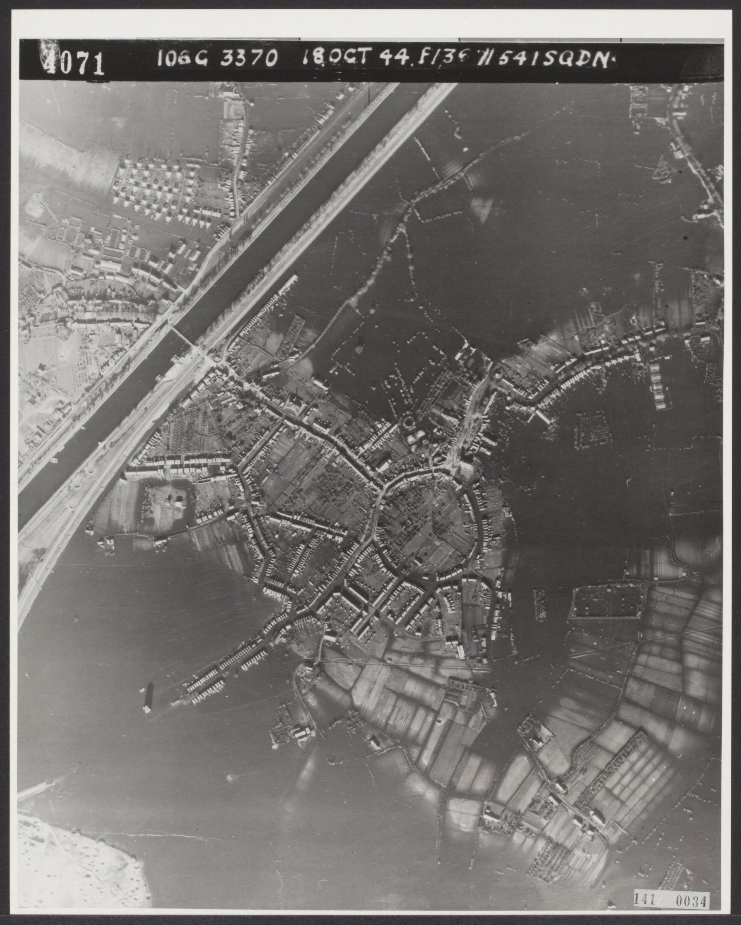 Luchtopname. Souburg op Walcheren tijdens inundatie