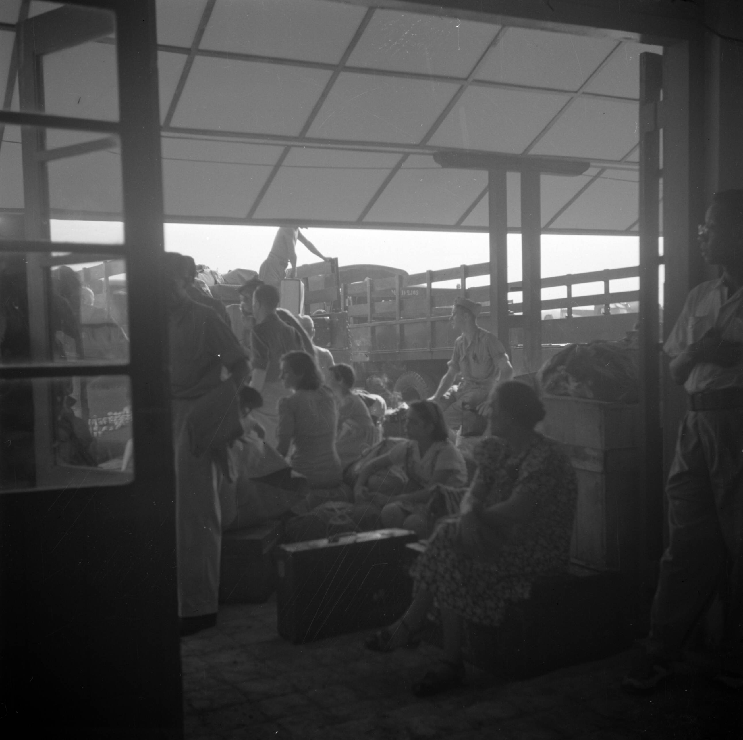 Repatrianten in Tandjong Priok afwachting van hun vertrek met het MS Oranje