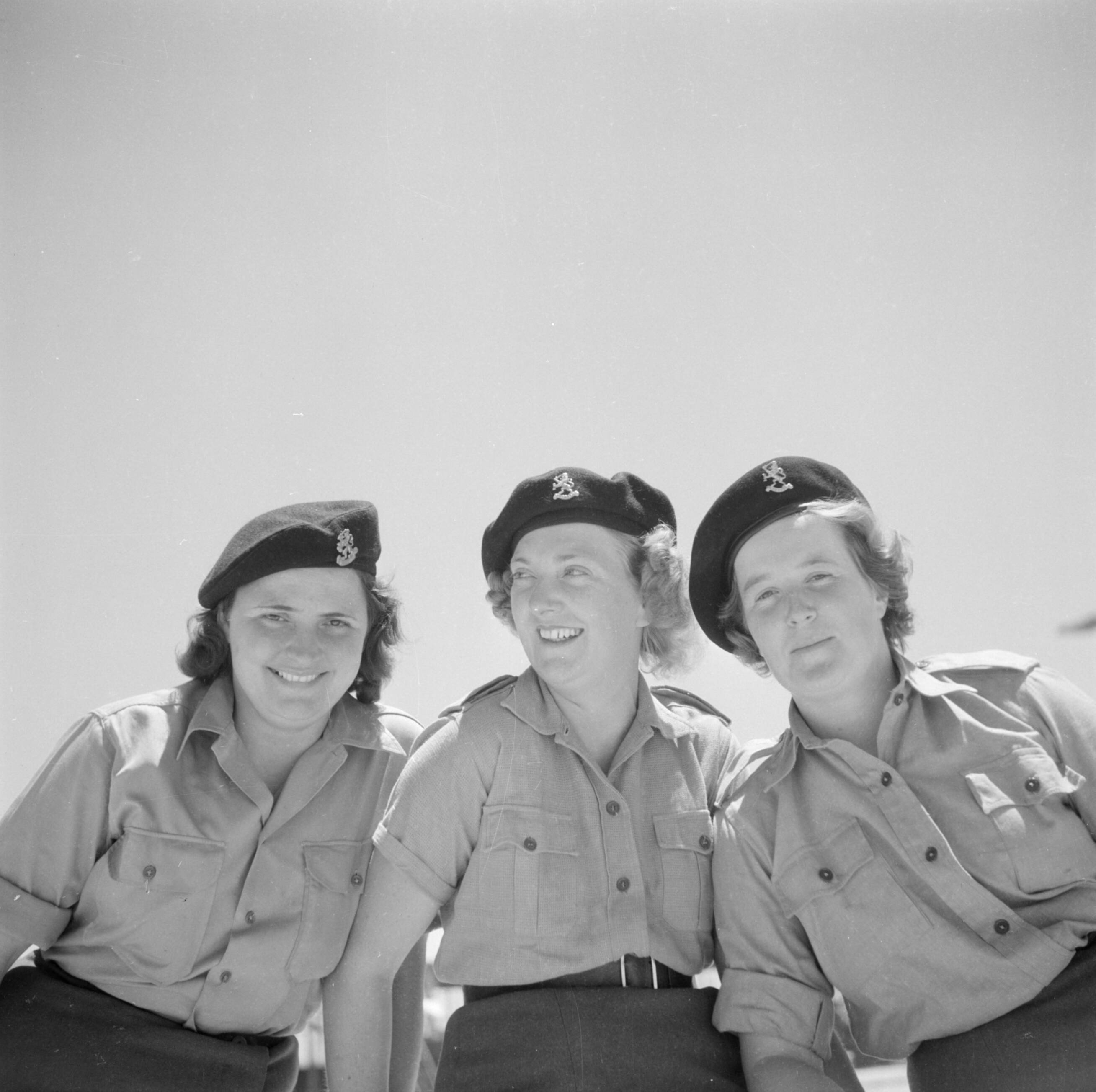Drie leden van het Vrouwen Hulp Korps in Ataka