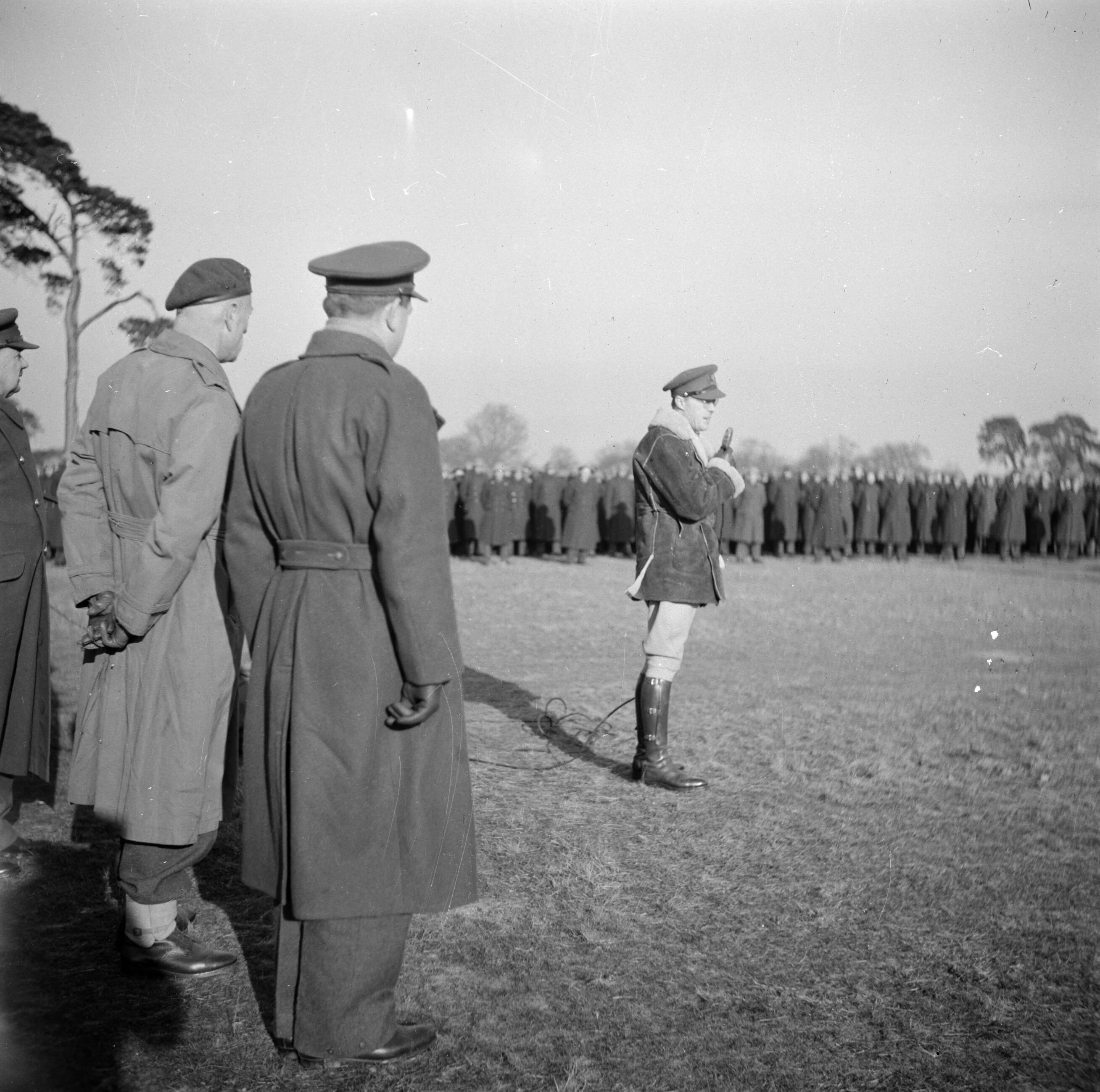 Prins Bernhard spreekt de verzamelde Nederlandse troepen toe