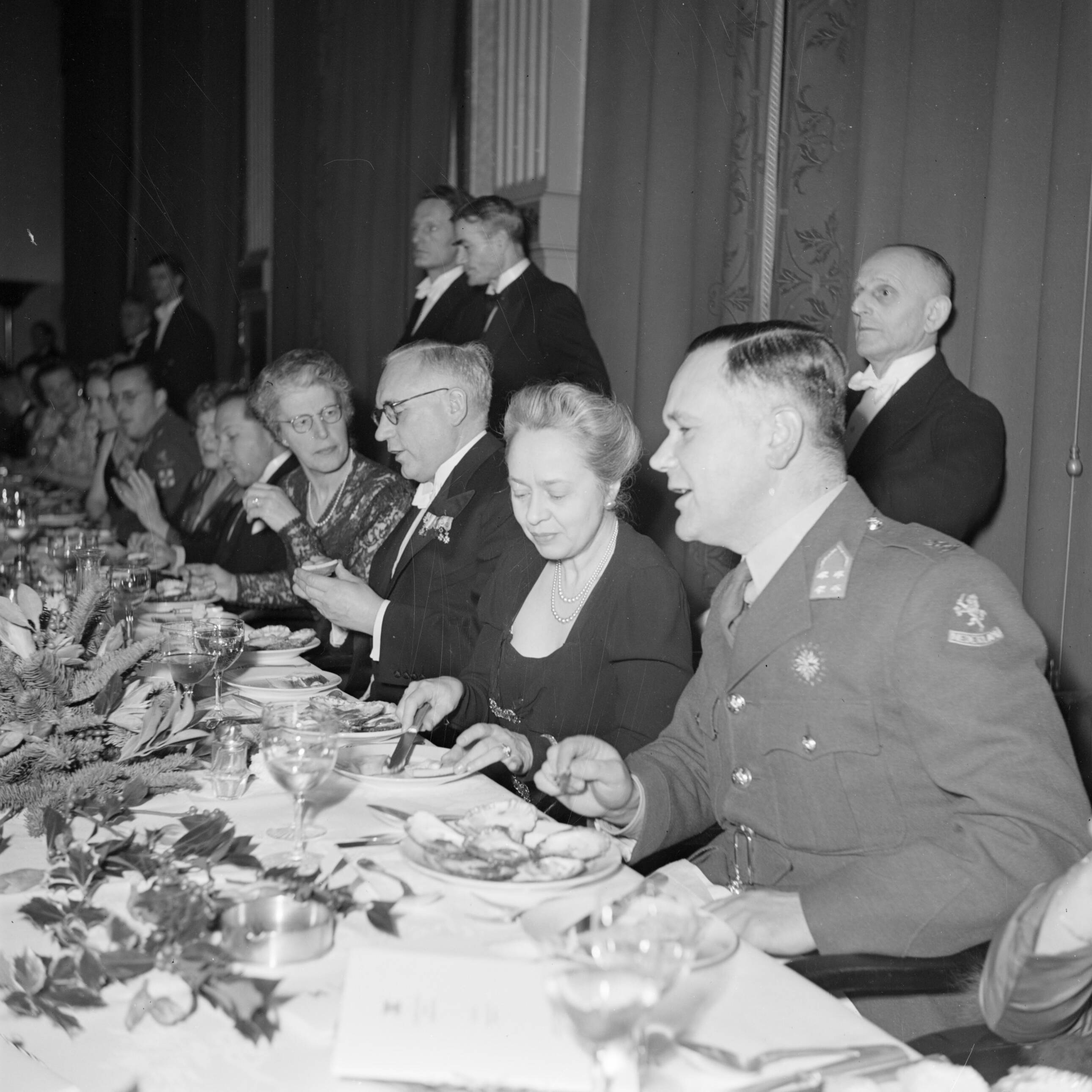 Gasten aan de dinertafel. 1e van rechts generaal Kruls