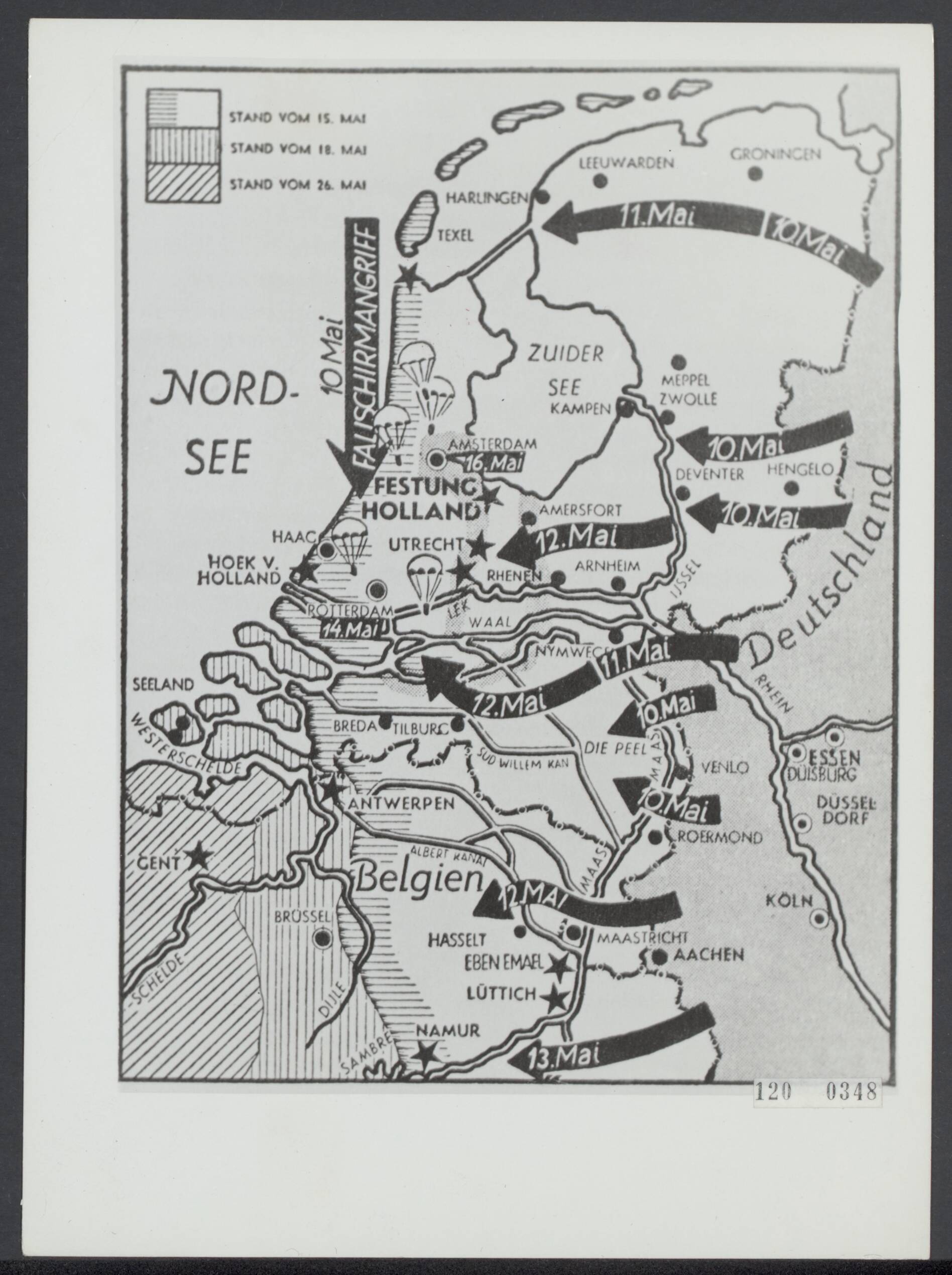 Meidagen 1940. Kaart met verloop Duitse inval