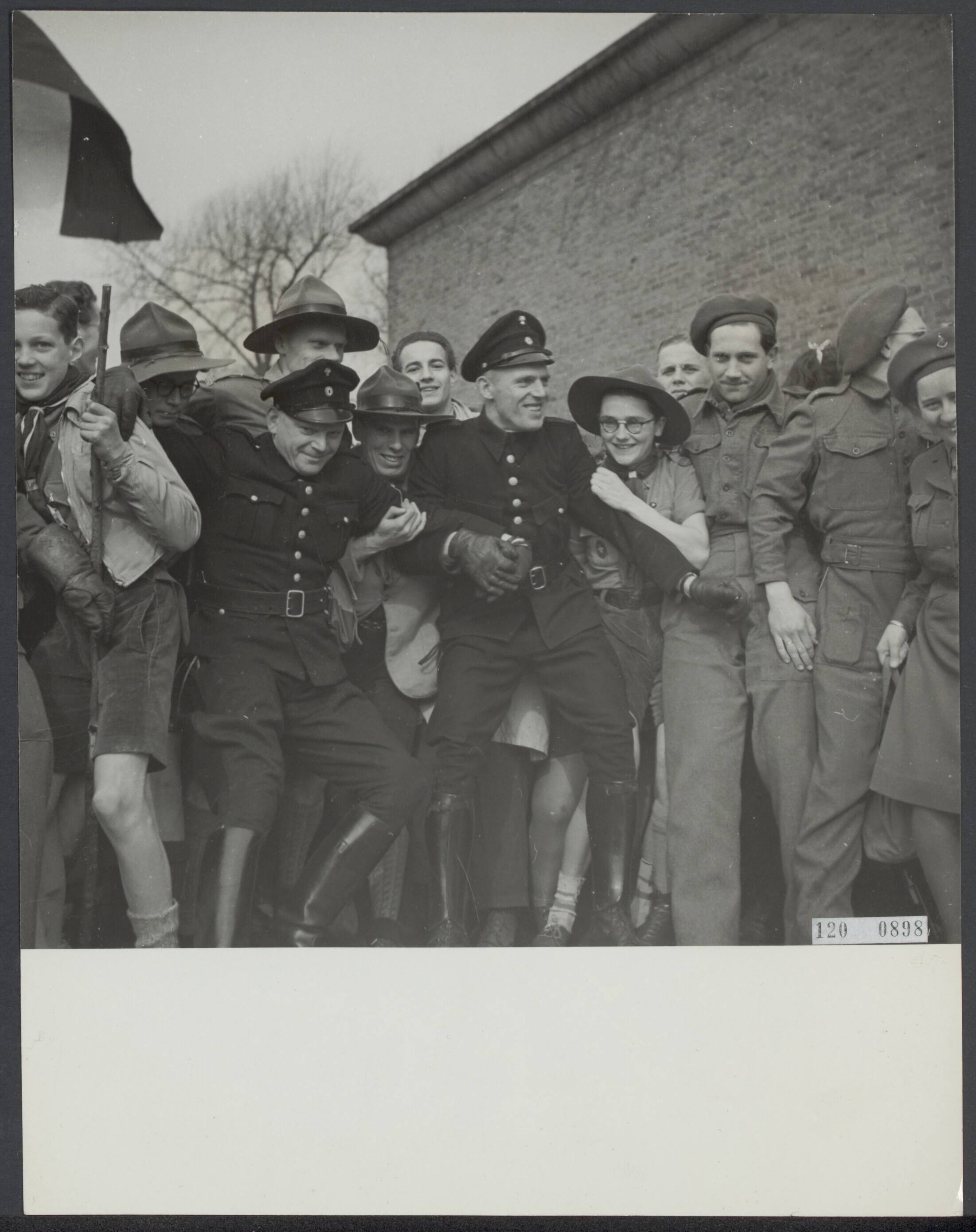 Bevrijding. Bezoek Koningin Wilhelmina aan Zuid-Nederland. Dringen geblazen in Eindhoven