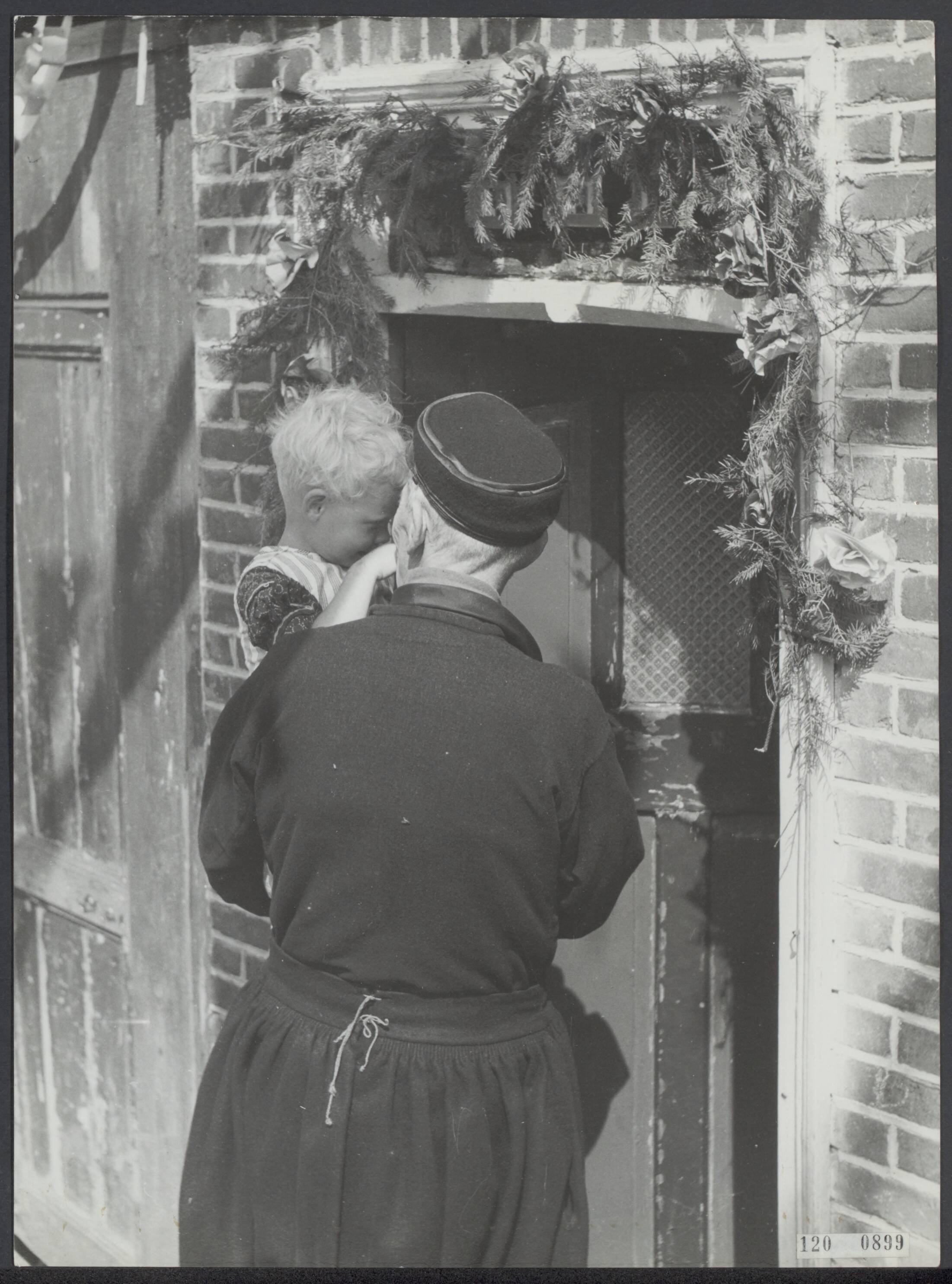 Bevrijdingsfeesten. Volendam viert de bevrijding. Man met kind