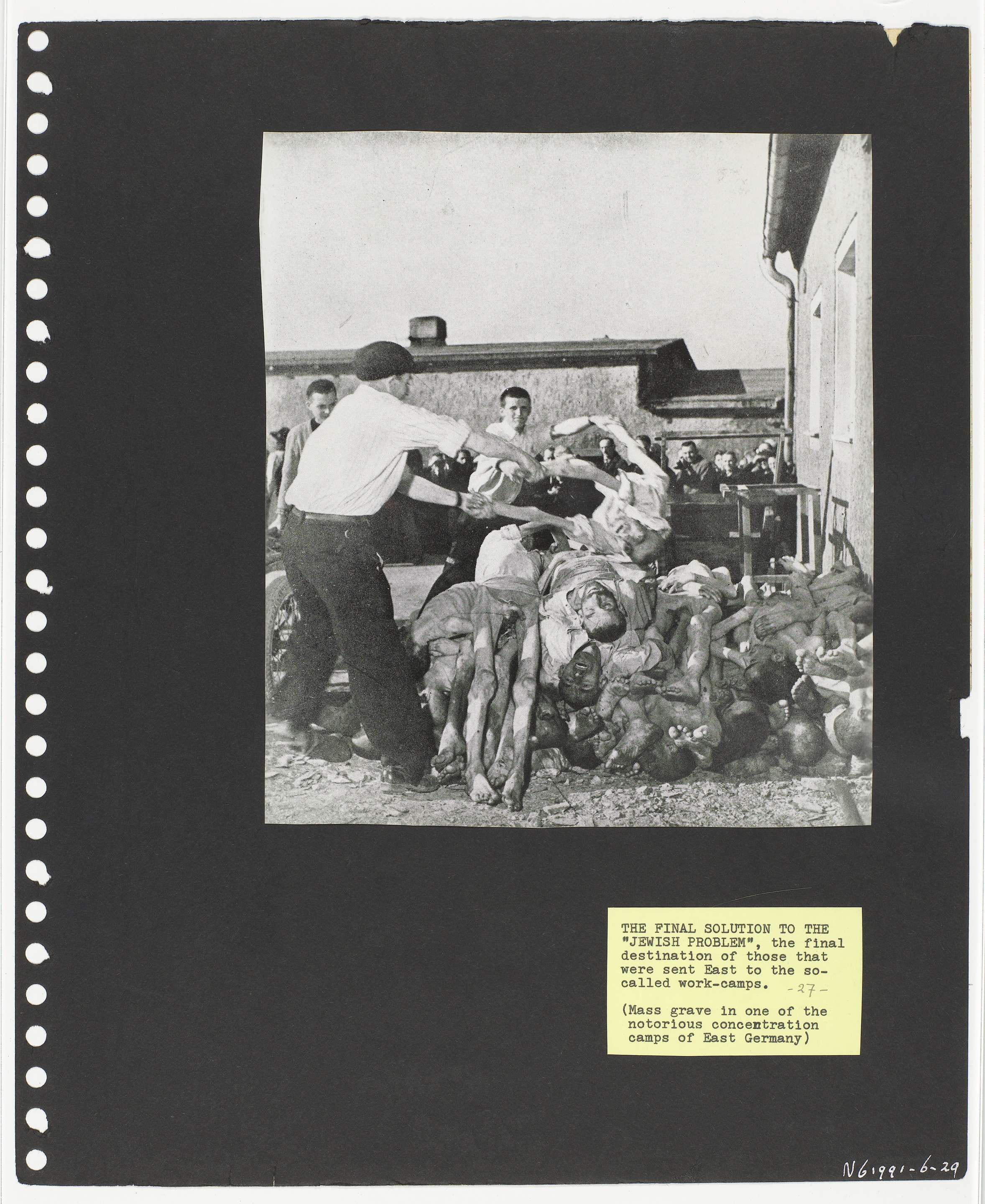 Foto van een foto: vermoorde joden worden in een massagraf gelegd.