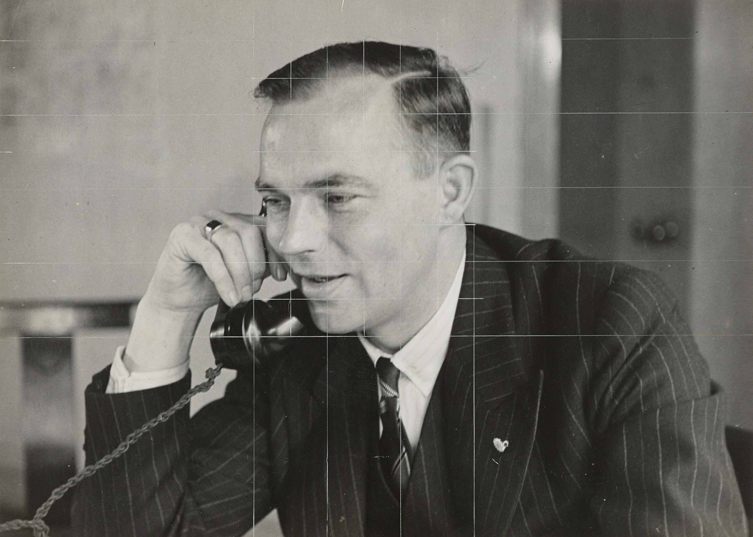 Minister J.A.W. Burger aan de telefoon