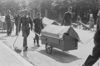 Duitse militairen van de Marine-Artillerie op de Carnegielaan trekken weg met medeneming van van een aanhangwagen met meubilair.