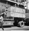 Vrachtschip s.s. Martin Behrman uit de V.S. wordt in de haven van Jakarta gelost, Indonesië (1947)