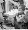 Een jongen zaagt een kleine balk overlangs door, Indonesië (1947)