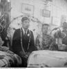 militair, nr. 25 - stadspatrouille in kampung bij Madiun, off. van 1-42 R.V.A. v.l.n.r., 2e Lt L. van Barneveldt - kapt. P.W.M. Heesbeen, kapt. P. Terlouw Maj. A.C. Recourt - 1e lt. L.H. Thijssen, 2e Lt. D. Meyer?, Madiun, Ned. Indië, 1950