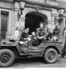 Jeep met Canadese soldaat, NBS-lid en publiek op jeep, Amsterdam (1945)