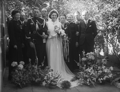 Huwelijk J. Uit de Bos-de Regt. Bruidspaar met familie (gezinnen).