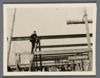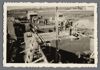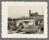 Overzicht over het bouwterrein met gezicht op de fabriekshal waarvan de kapspanten voor een groot deel aanwezig zijn.