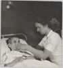Een arts onderzoekt in het Binnengasthuis aan de Grimburgwal de gezwollen enkel van een lijder aan hongeroedeem.