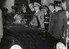 Tweede Wereldoorlog. Een auto met kenteken G. 92000, tijdens een bombardement geparkeerd in de omgeving van Schiphol, trekt veel belangstelling in Amsterdam. De portier van Riche en een andere heer bekijken de met kogels doorzeefde auto. mei 1940.
