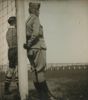 Gejus van der Meulen (1903-1972), voetballer, keeper van HFC, Nederlandse SS-er. Van der Meulen, tijdens zijn proces in 1947, waarin hij tot enkele jaren gevangenisstraf werd veroordeeld. Nederland, 1947.