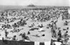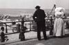 Strandtaferelen. Gedeelte van het strand met badgasten en rieten strandstoelen met op de achtergrond de Scheveningse Pier. Nederland, Scheveningen, 7 augustus 1941
