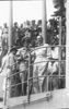 A group of Allied personnel on the deck of the U.S. Missouri during the signing of the surrender of the Japanese.