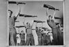 Mariniers houden exercitie met geweer. Dit zijn Nederlandse mariniers van het Marine Vendel of Marine-vendel. Dat onderdeel bestond uit burger personeel van het Departement van Marine te Batavia in 1941-1942. Het had als taak de beveiliging van de gebouwen van het Departement, en was formeel onderdeel van de Stadswacht Batavia. Op het lint op de bamboehoed staat Koninklijke Marine. NI 6786