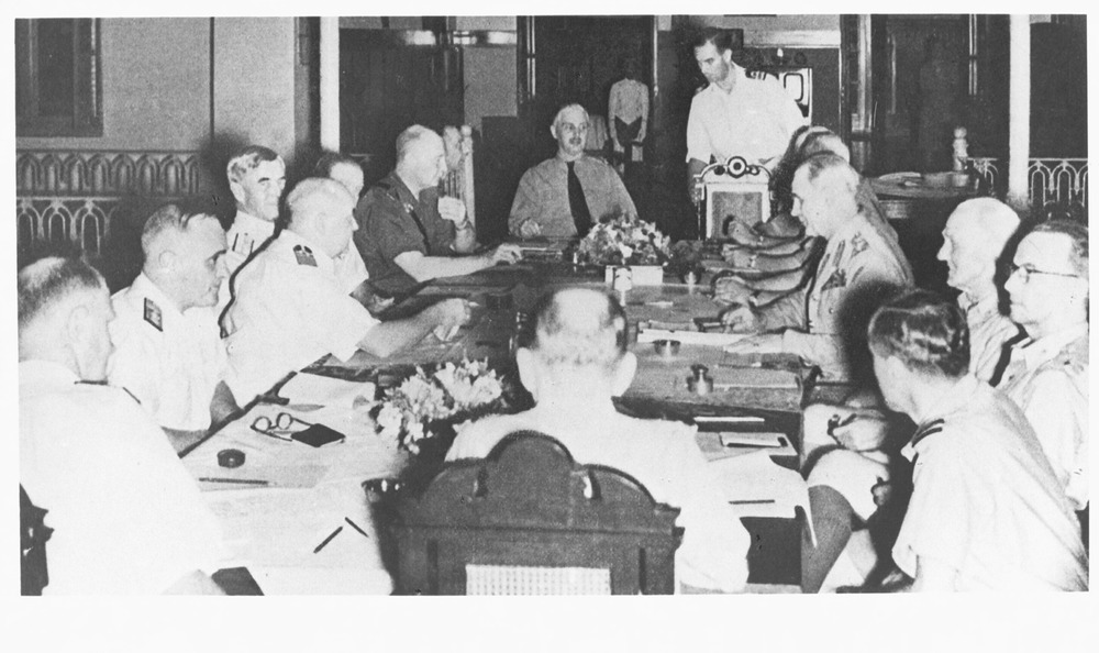 Vergadering van het ABDA-command op Java onder voorzitterschap van generaal Sir Archibald Wavell in januari 1942. NI 7573
